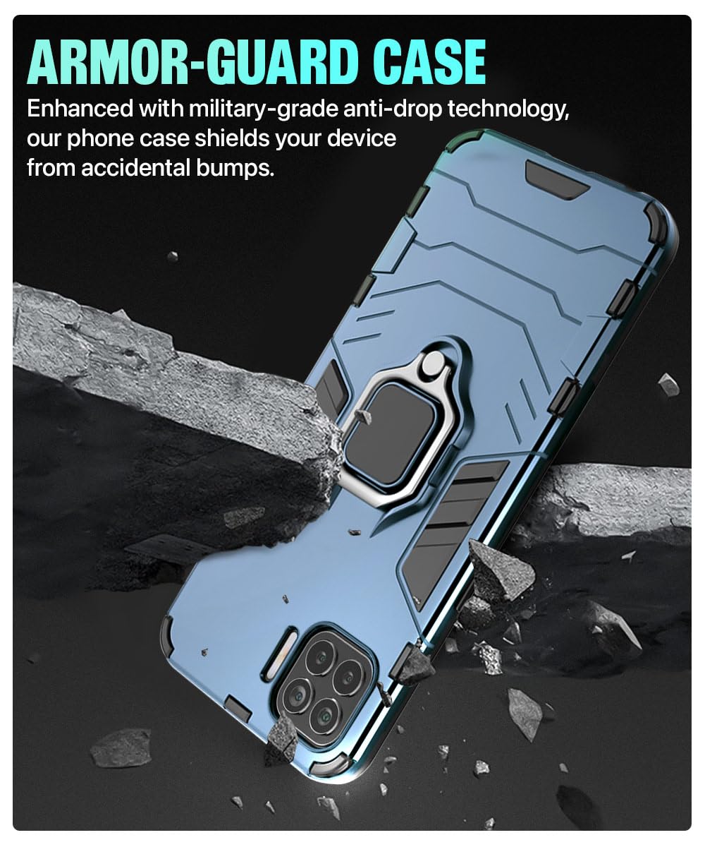 Shock Proof Back Case Mobile Cover for Oppo F17 | Back Cover Case (Tough Armor | Hybrid PC + TPU | Ring Holder & in-Built Kickstand | Blue)