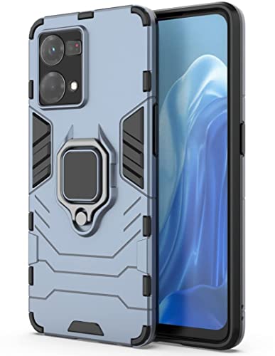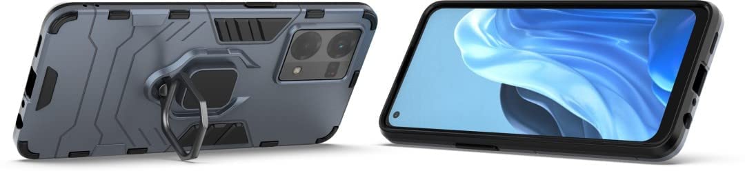 Shock Proof Back Case Mobile Cover for Oppo F21 Pro 4G | Back Cover Case (Tough Armor | Hybrid PC + TPU | Ring Holder & in-Built Kickstand | Blue)