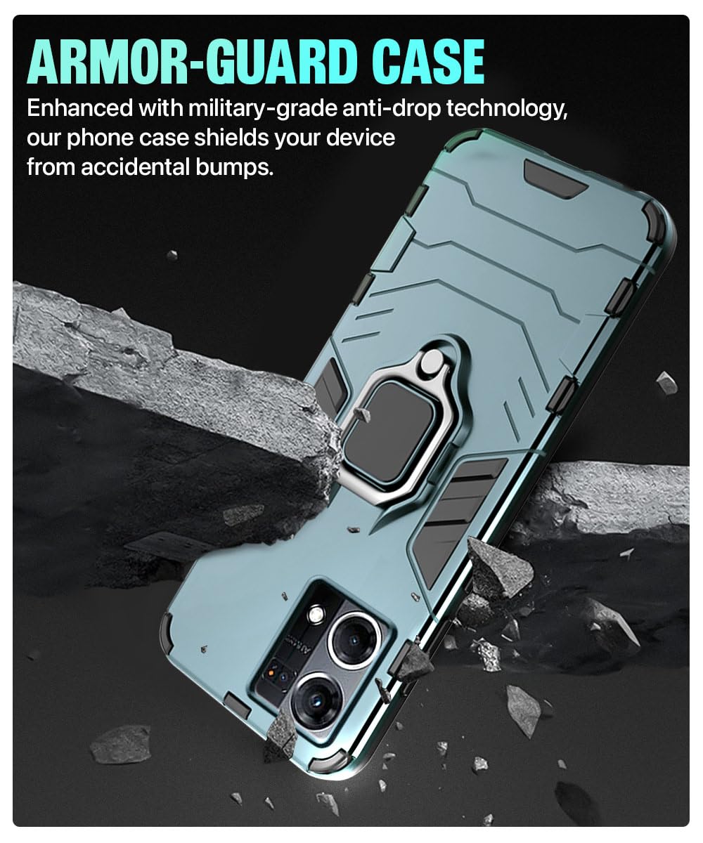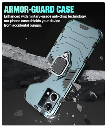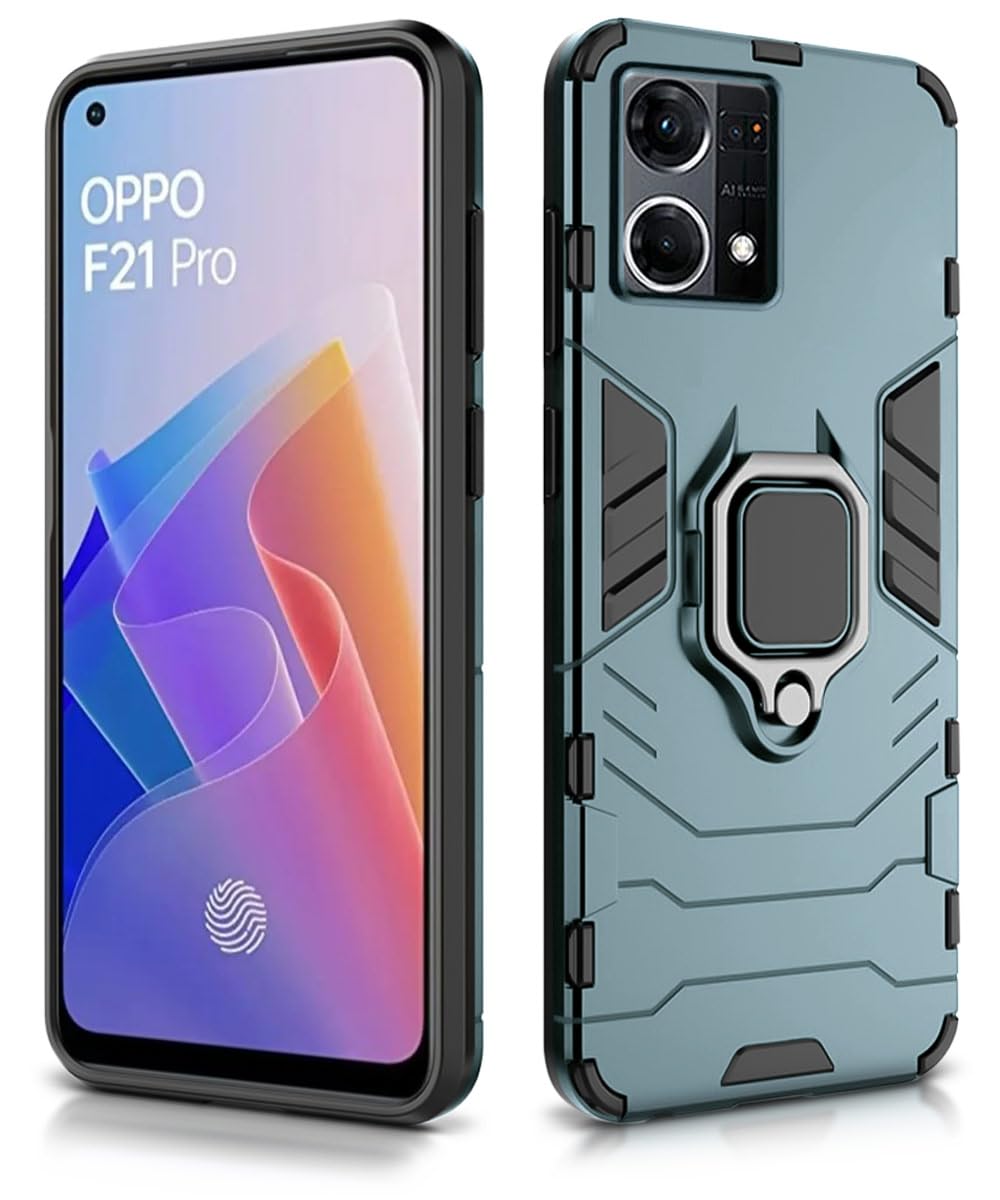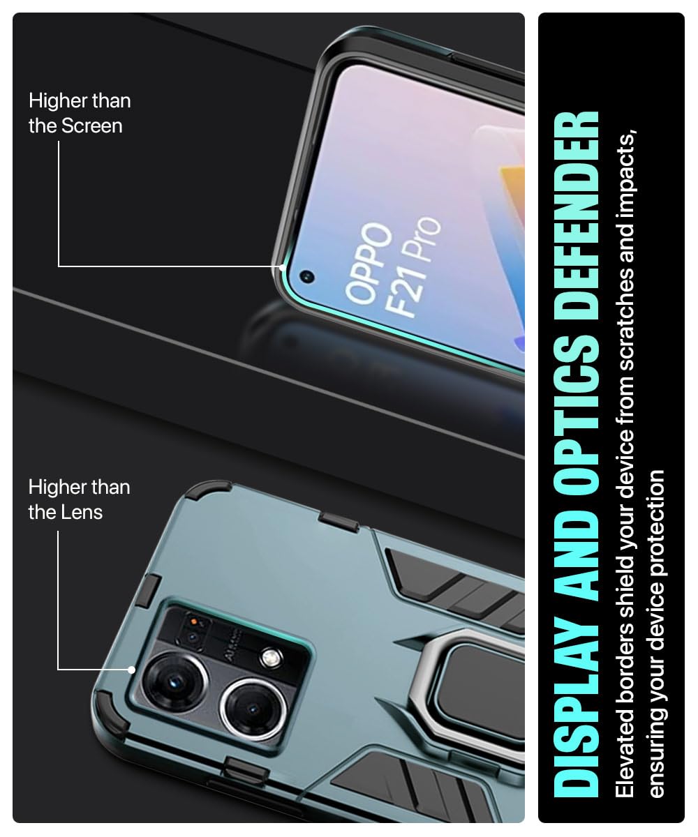 Shock Proof Back Case Mobile Cover for Oppo F21 Pro 4G | Back Cover Case (Tough Armor | Hybrid PC + TPU | Ring Holder & in-Built Kickstand | Green)