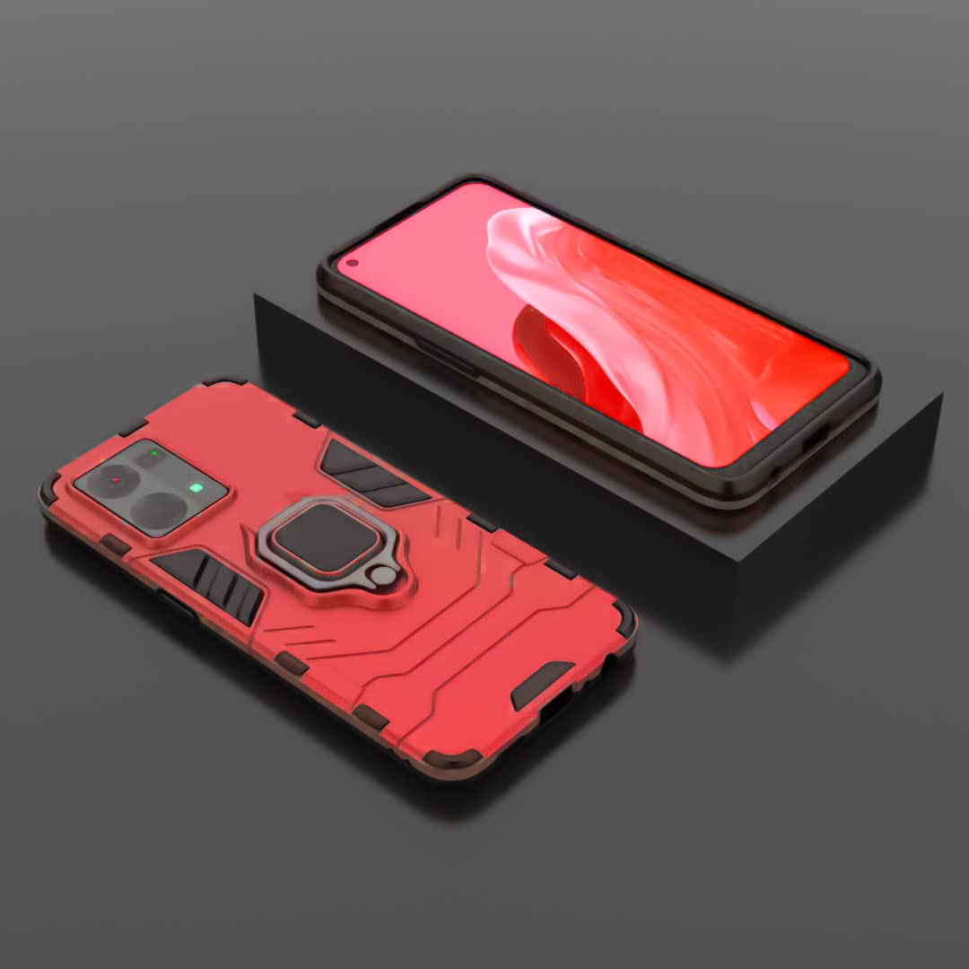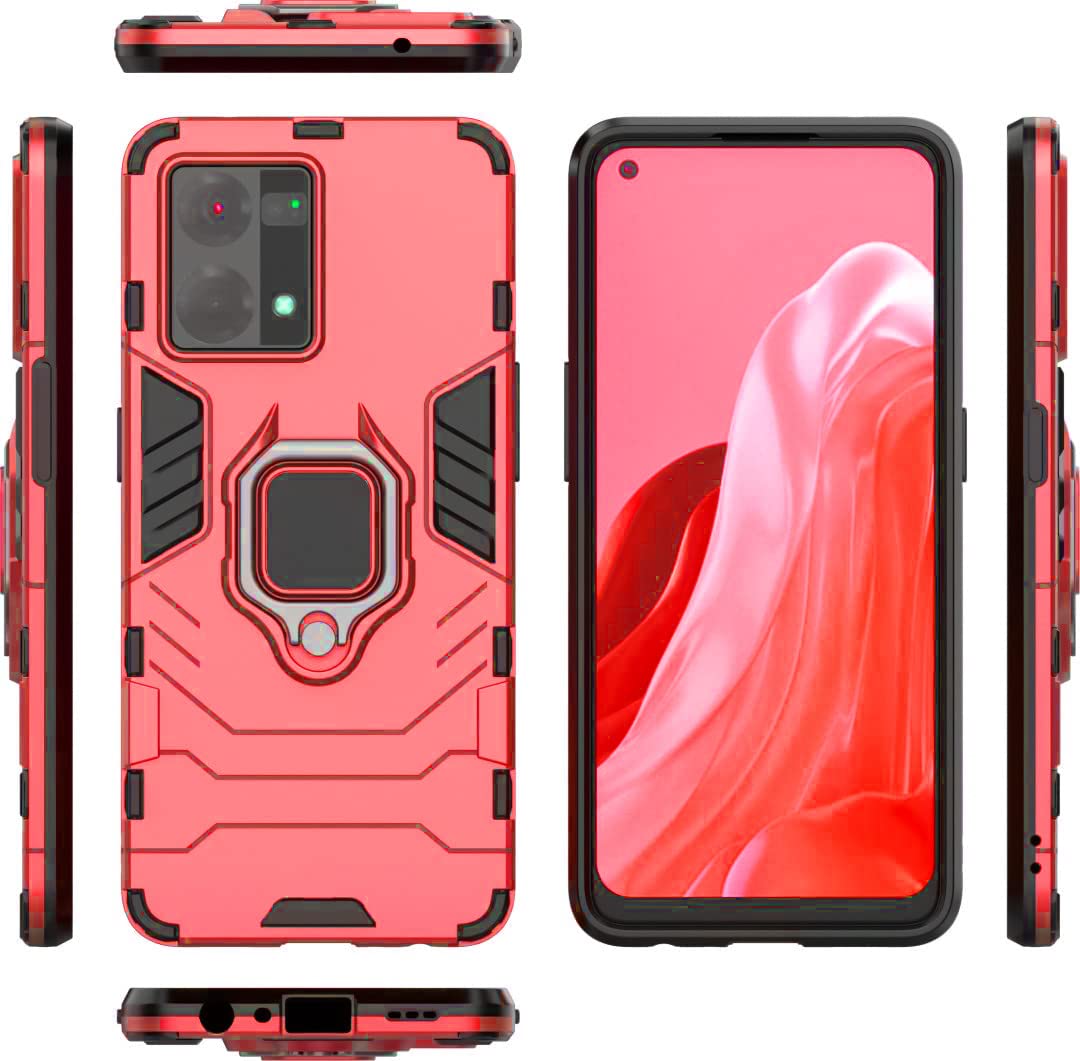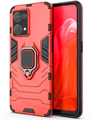 Shock Proof Back Case Mobile Cover for Oppo F21 Pro 4G | Back Cover Case (Tough Armor | Hybrid PC + TPU | Ring Holder & in-Built Kickstand | Red)