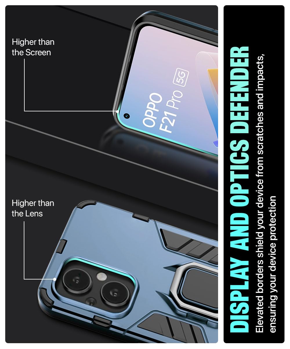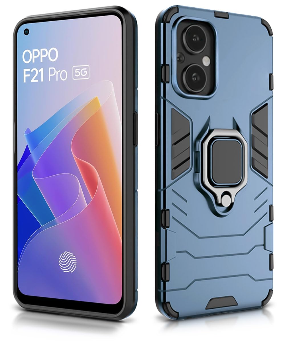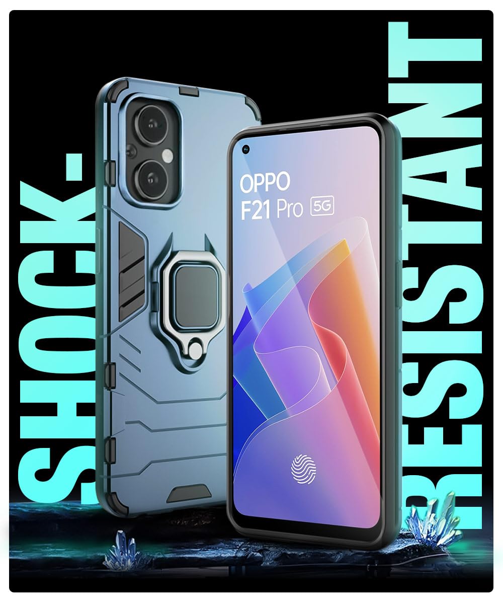 Shock Proof Back Case Mobile Cover for Oppo F21 Pro 5G | Back Cover Case (Tough Armor | Hybrid PC + TPU | Ring Holder & in-Built Kickstand | Blue)