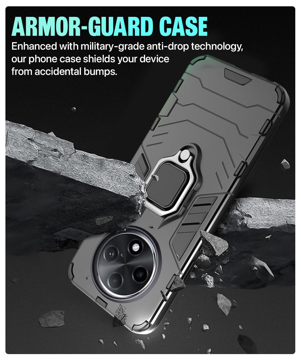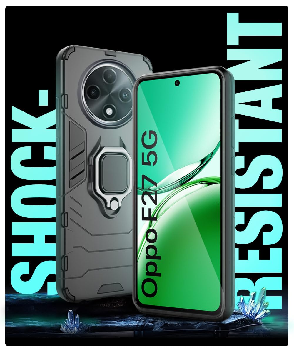 Shock Proof Back Case Mobile Cover for Oppo F27 5G | Back Cover Case (Tough Armor | Hybrid PC + TPU | Ring Holder & in-Built Kickstand | Black)