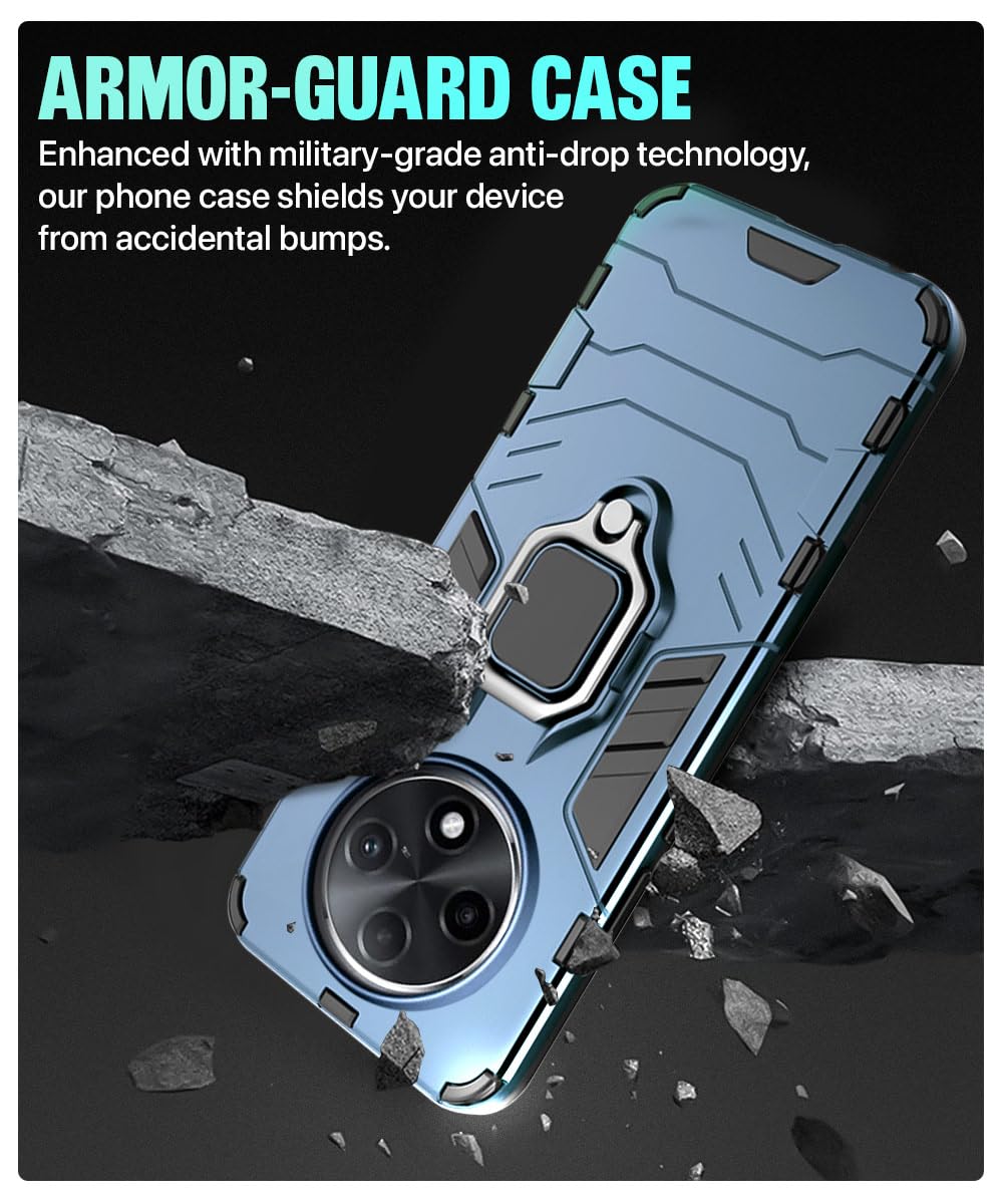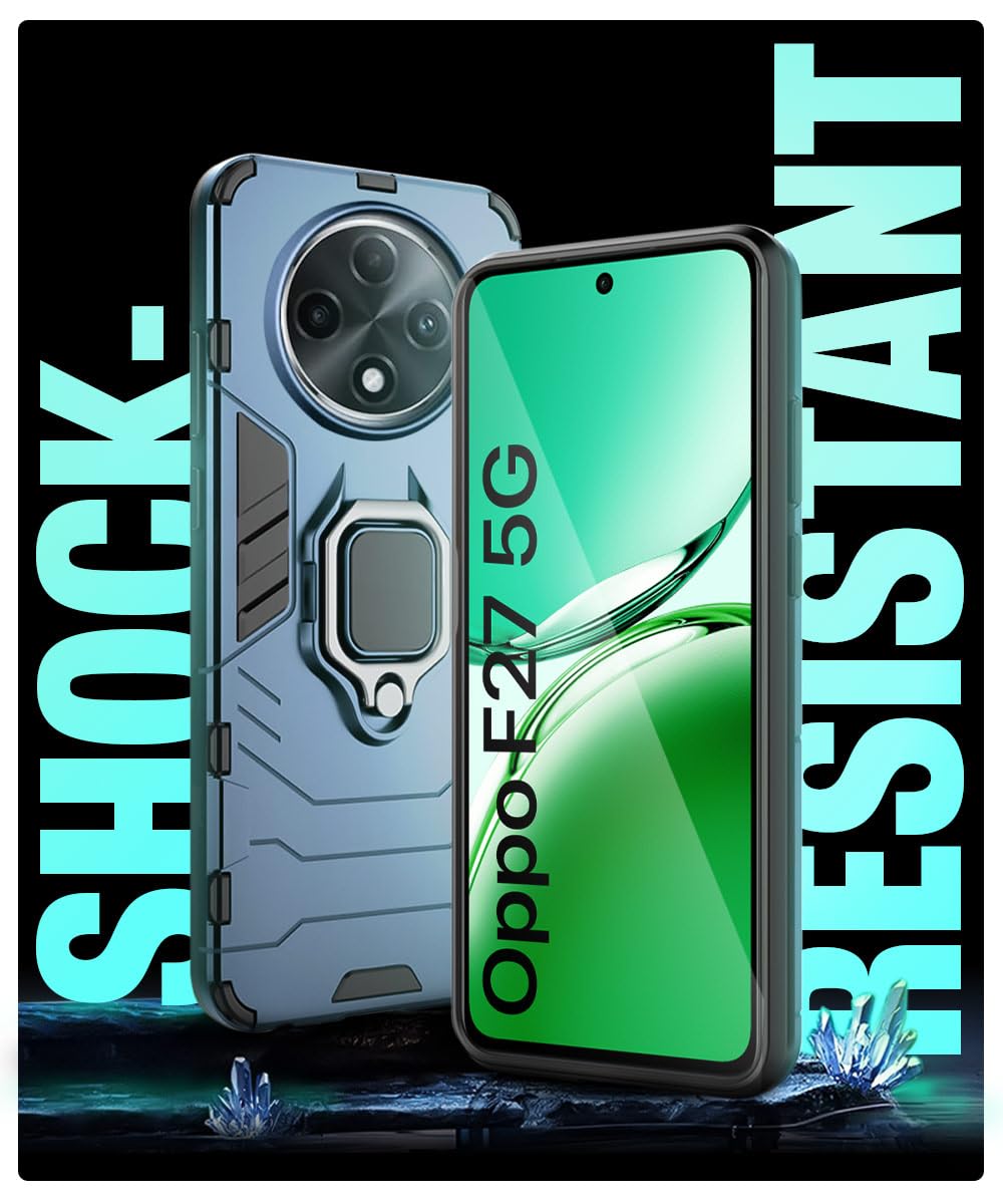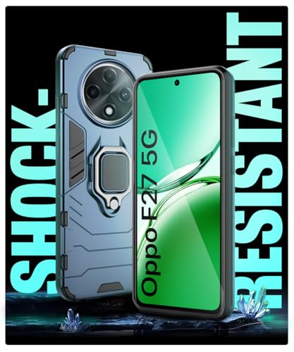 Shock Proof Back Case Mobile Cover for Oppo F27 5G | Back Cover Case (Tough Armor | Hybrid PC + TPU | Ring Holder & in-Built Kickstand | Blue)