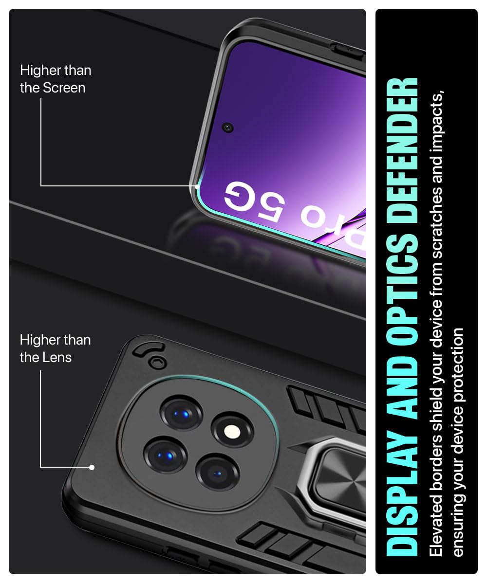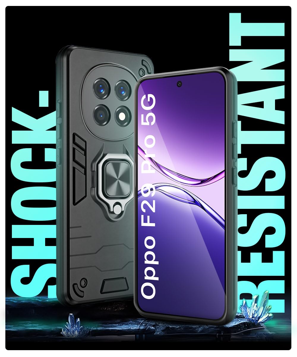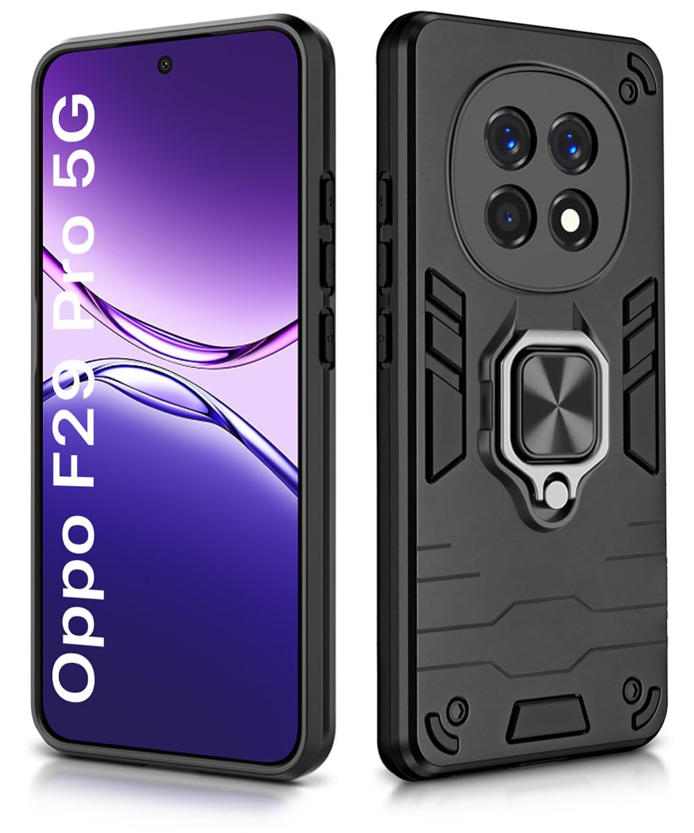 Shock Proof Back Case Mobile Cover for Oppo F29 Pro 5G | Back Cover Case (Tough Armor | Hybrid PC + TPU | Ring Holder & in-Built Kickstand | Black)