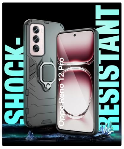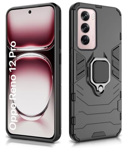 Shock Proof Back Case Mobile Cover for Oppo Reno 12 Pro 5G (Tough Armor | Hybrid PC + TPU | Full Protection with Ring Holder & in-Built Kickstand | Black)