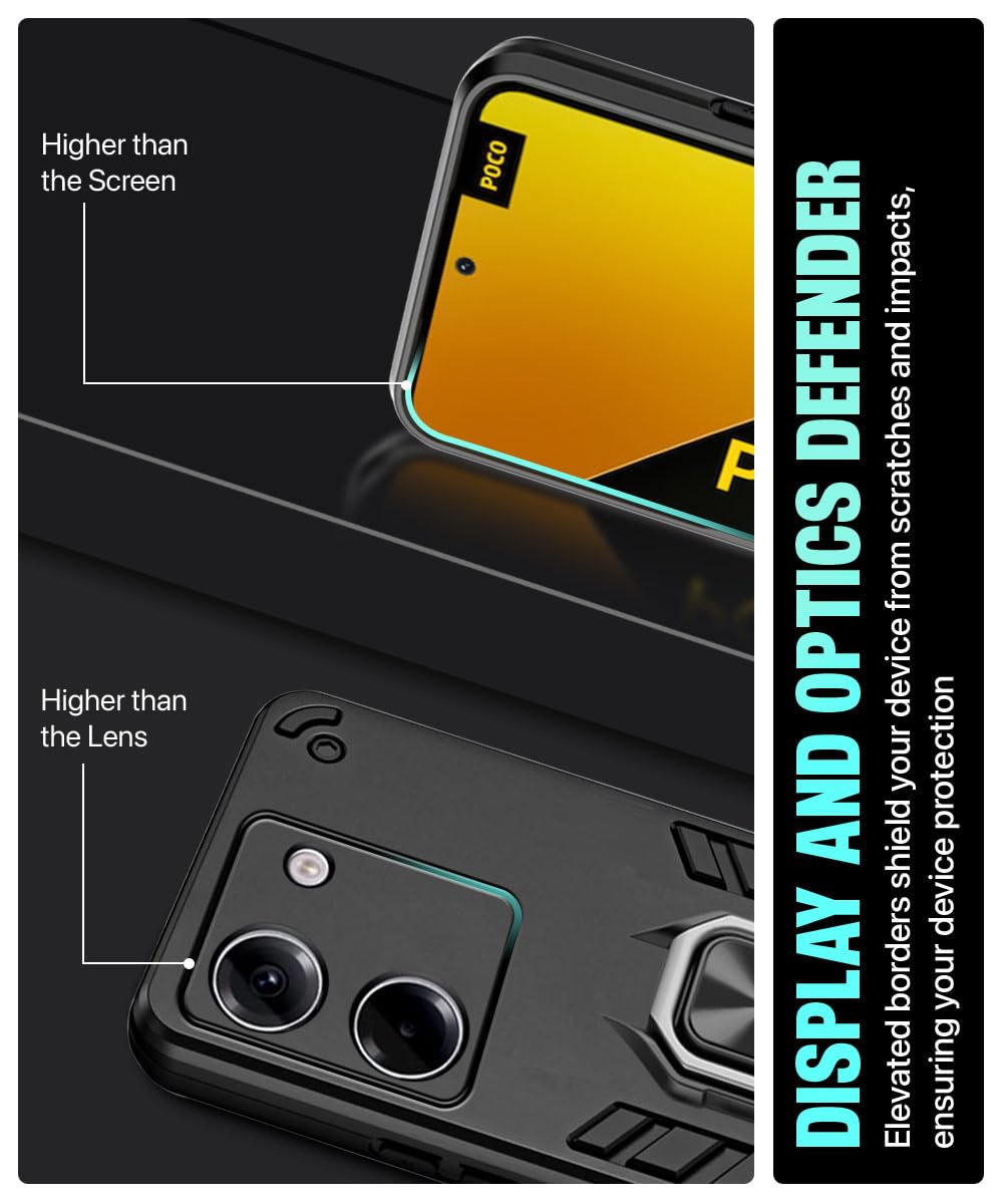 The Shock Proof Back Case Mobile Cover for Poco M7 Pro 5G | Back Cover Case (Tough Armor | Hybrid PC + TPU | Ring Holder & in-Built Kickstand | Black) is designed with premium quality materials to provide superior protection, durability, and style for your smartphone. It offers a perfect balance between functionality and aesthetics, ensuring your device stays safe from scratches, impacts, and daily wear. Engineered with precision, it features accurate cutouts for ports, buttons, and cameras, making it highly convenient for everyday use. The slim and lightweight design ensures that your device retains its sleek profile without adding unnecessary bulk. Whether it is a nano film tempered glass, a hybrid back case, or a camera lens protector, each product is created with attention to detail to enhance the user experience and extend the life of your smartphone. The material used ensures long-lasting clarity, anti-scratch performance, and resistance against fingerprints and smudges. It is the ideal choice for users who want both style and substance in their smartphone accessories. This product from reflects innovation and craftsmanship, making it a reliable accessory that safeguards your investment while maintaining modern appeal.