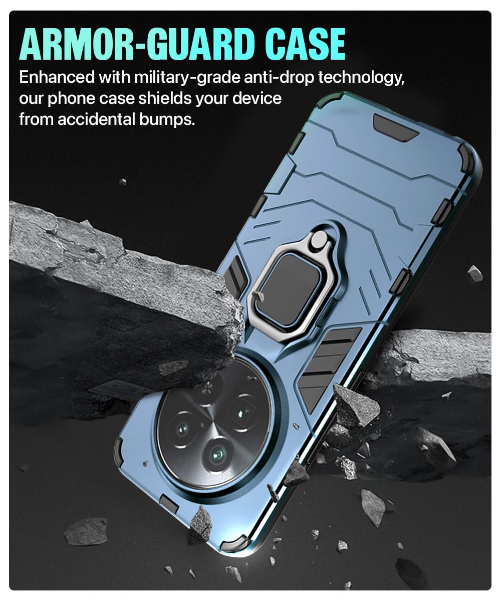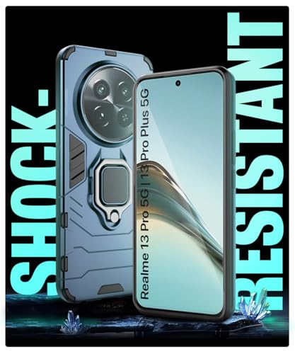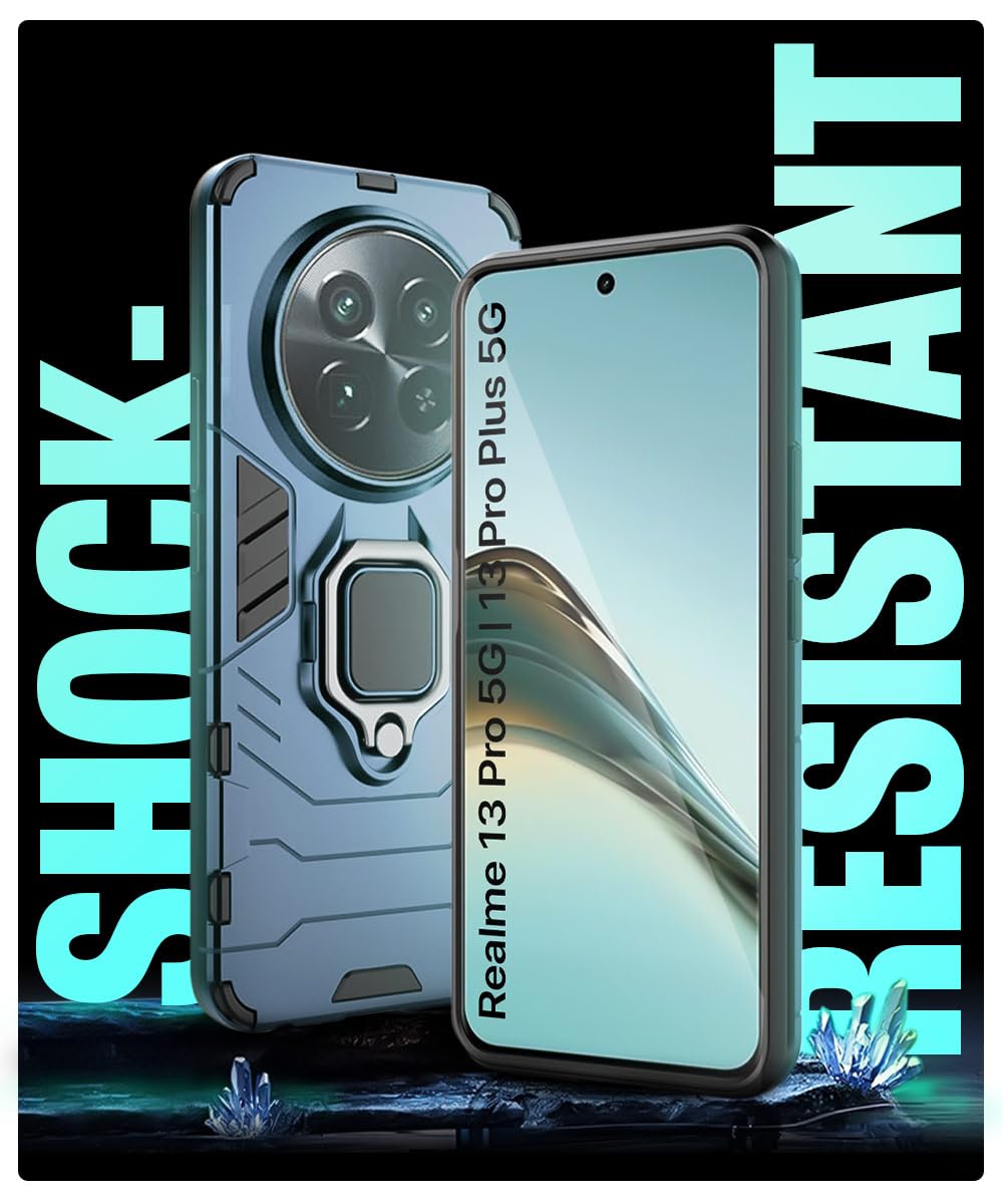 Shock Proof Back Case Mobile Cover for Realme 13 Pro 5G | Realme 13 Pro Plus 5G | Back Cover Case (Tough Armor | Hybrid PC + TPU | Ring Holder & in-Built Kickstand | Blue)