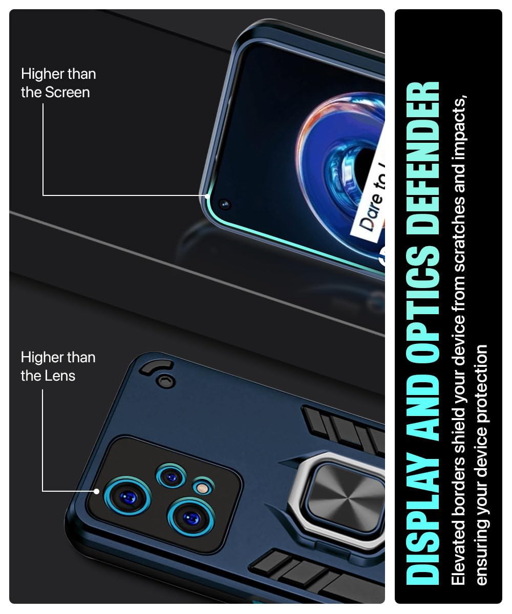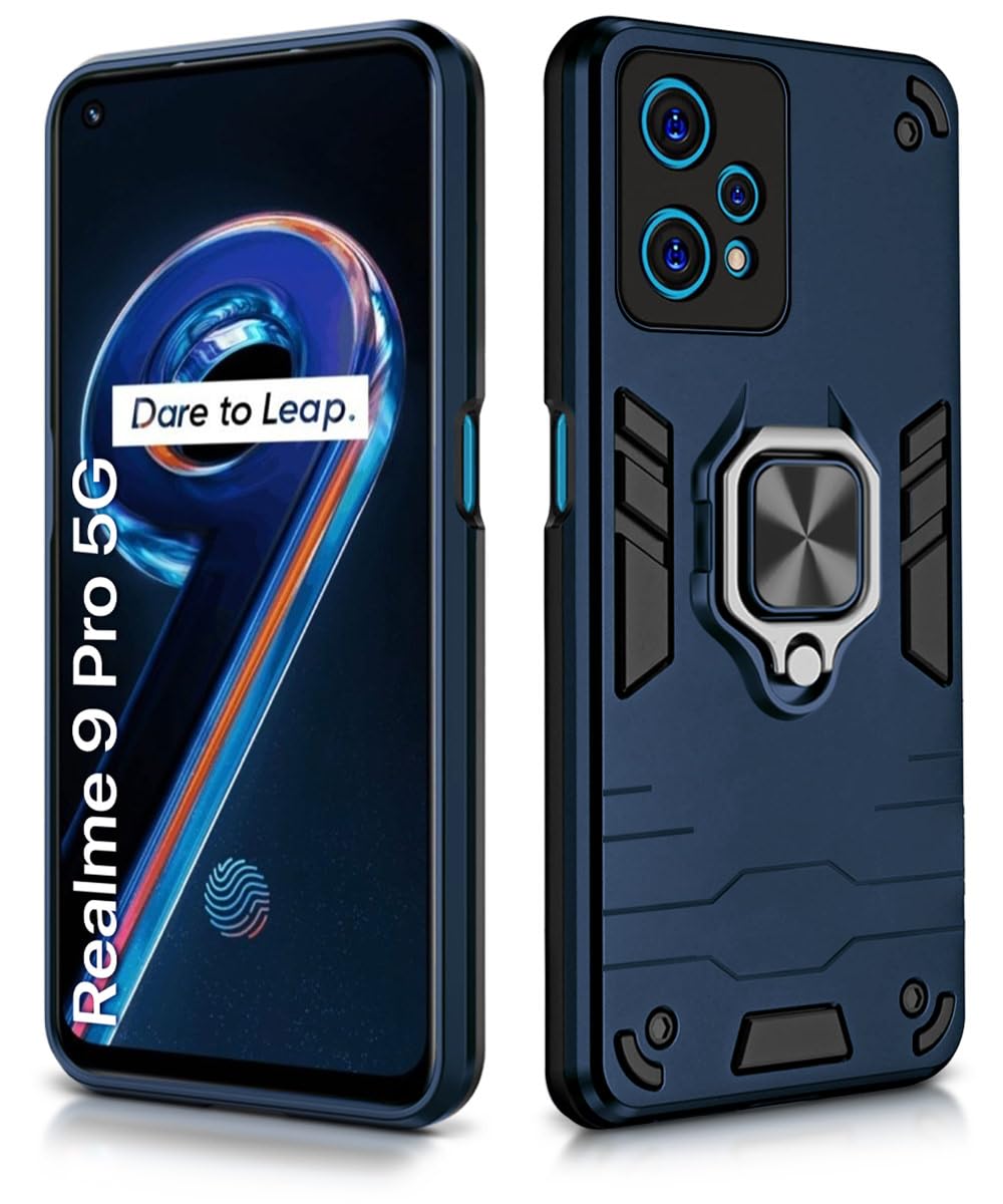 Shock Proof Back Case Mobile Cover for Realme 9 Pro 5G | Back Cover Case (Tough Armor | Hybrid PC + TPU | Ring Holder & in-Built Kickstand | Blue)