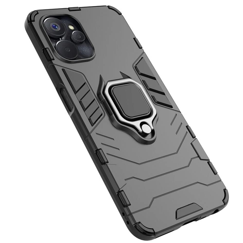Shock Proof Back Case Mobile Cover for Realme 9i 5G | Realme 9i 5G | Back Cover Case (Tough Armor | Hybrid PC + TPU | Ring Holder & in-Built Kickstand | Black)