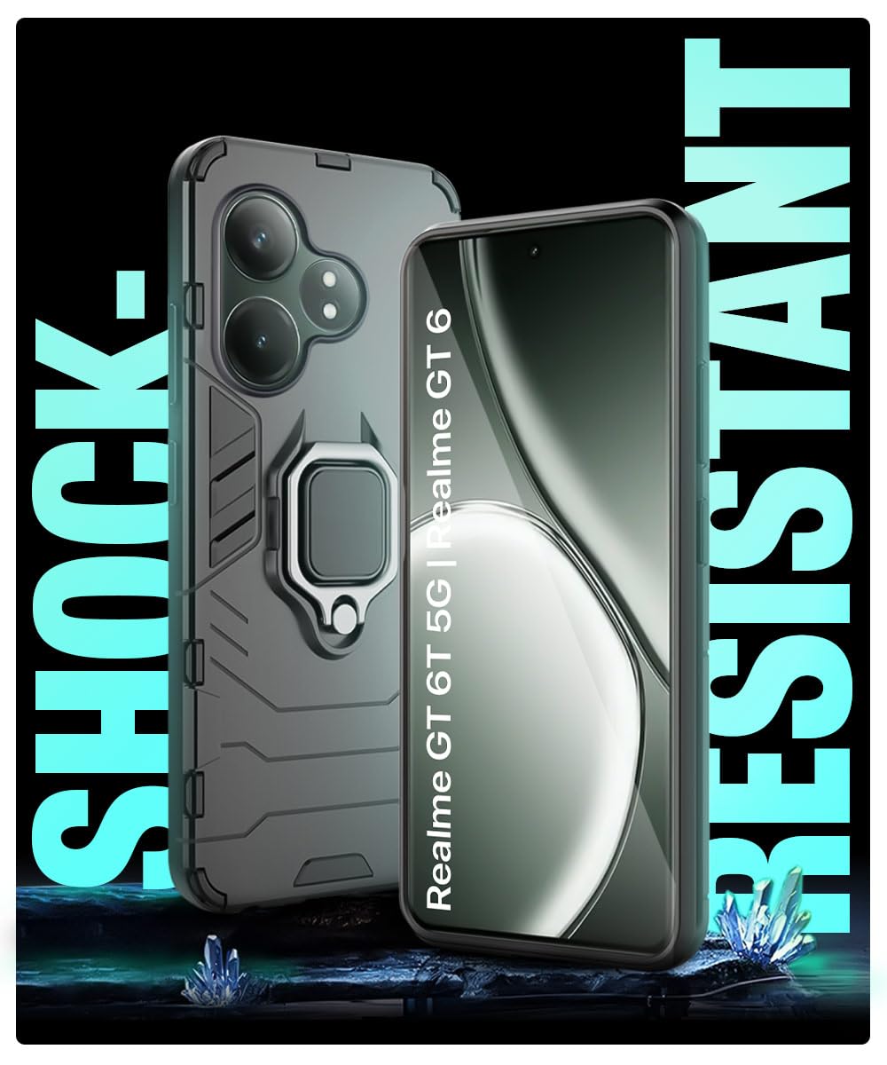 The Shock Proof Back Case Mobile Cover for Realme GT 6T 5G | Realme GT 6 | Back Cover Case (Tough Armor | Hybrid PC + TPU | Ring Holder & in-Built Kickstand | Black) is designed with premium quality materials to provide superior protection, durability, and style for your smartphone. It offers a perfect balance between functionality and aesthetics, ensuring your device stays safe from scratches, impacts, and daily wear. Engineered with precision, it features accurate cutouts for ports, buttons, and cameras, making it highly convenient for everyday use. The slim and lightweight design ensures that your device retains its sleek profile without adding unnecessary bulk. Whether it is a nano film tempered glass, a hybrid back case, or a camera lens protector, each product is created with attention to detail to enhance the user experience and extend the life of your smartphone. The material used ensures long-lasting clarity, anti-scratch performance, and resistance against fingerprints and smudges. It is the ideal choice for users who want both style and substance in their smartphone accessories. This product from reflects innovation and craftsmanship, making it a reliable accessory that safeguards your investment while maintaining modern appeal.
