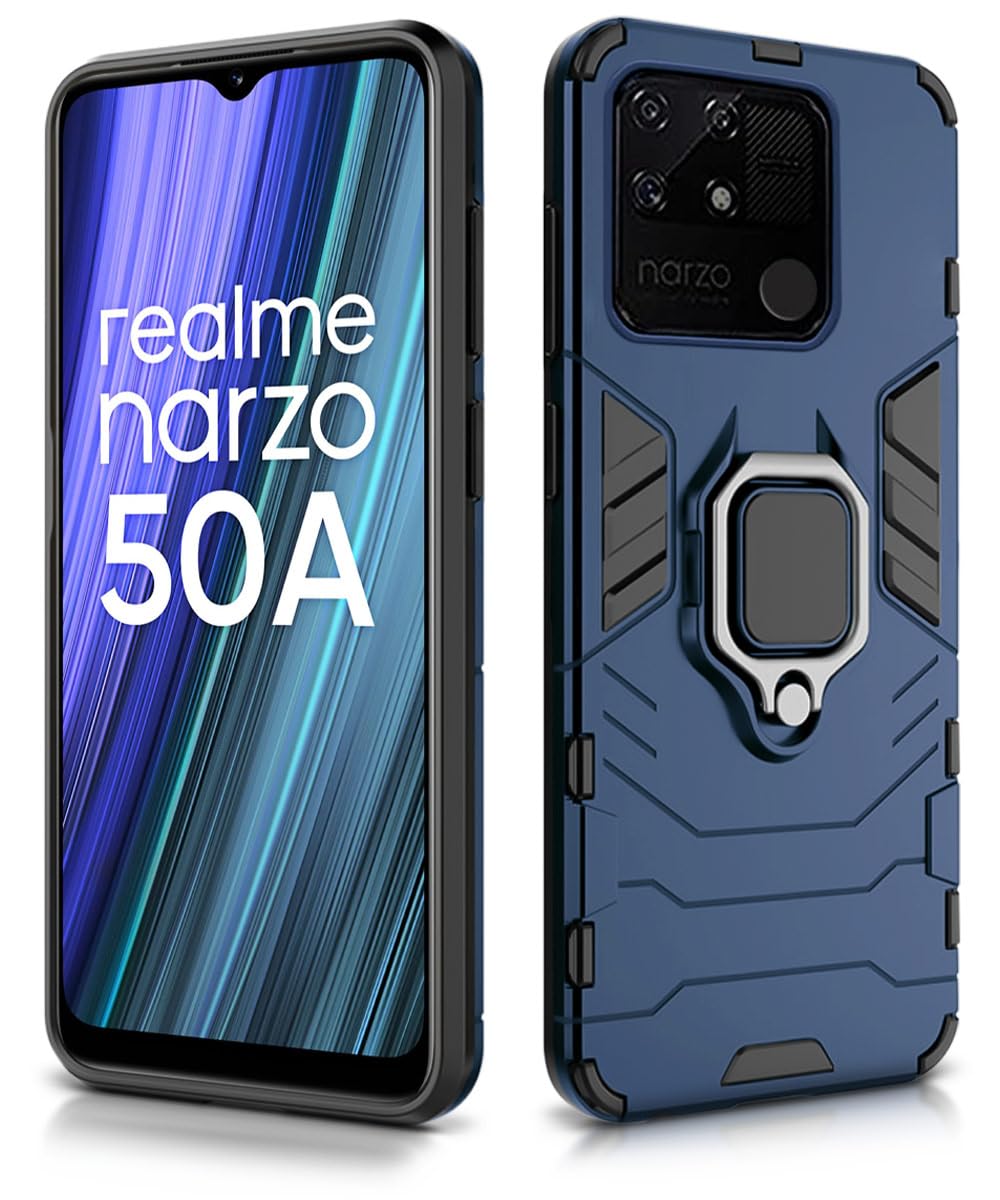 Shock Proof Back Case Mobile Cover for Realme Narzo 50A | Back Cover Case (Tough Armor | Hybrid PC + TPU | Ring Holder & in-Built Kickstand | Blue)