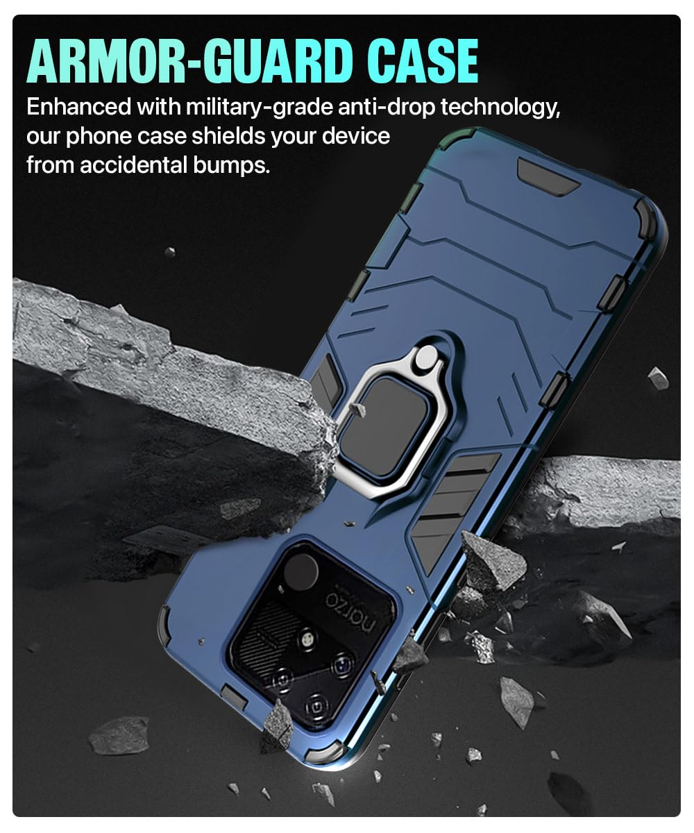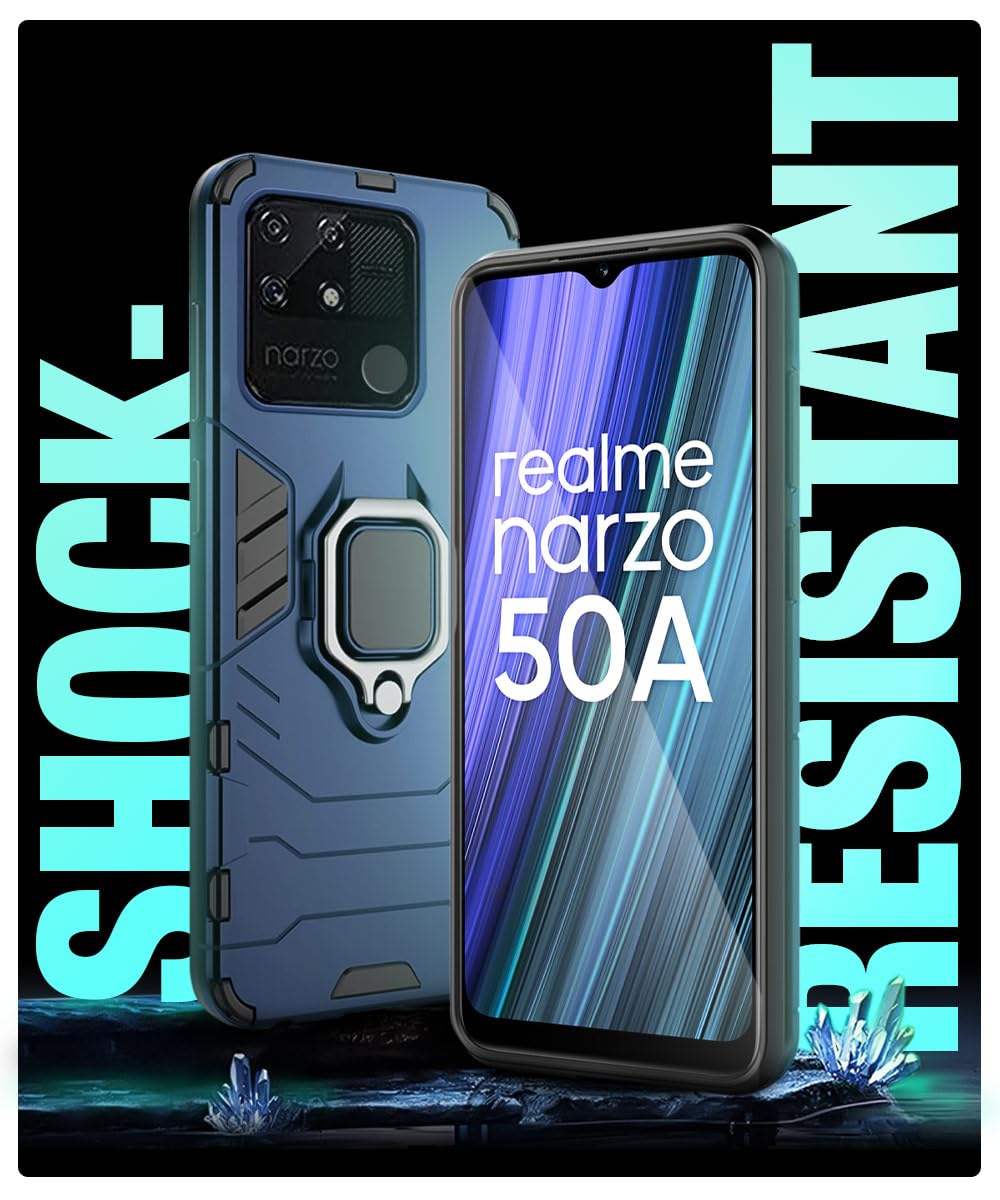 The Shock Proof Back Case Mobile Cover for Realme Narzo 50A | Back Cover Case (Tough Armor | Hybrid PC + TPU | Ring Holder & in-Built Kickstand | Blue) is designed with premium quality materials to provide superior protection, durability, and style for your smartphone. It offers a perfect balance between functionality and aesthetics, ensuring your device stays safe from scratches, impacts, and daily wear. Engineered with precision, it features accurate cutouts for ports, buttons, and cameras, making it highly convenient for everyday use. The slim and lightweight design ensures that your device retains its sleek profile without adding unnecessary bulk. Whether it is a nano film tempered glass, a hybrid back case, or a camera lens protector, each product is created with attention to detail to enhance the user experience and extend the life of your smartphone. The material used ensures long-lasting clarity, anti-scratch performance, and resistance against fingerprints and smudges. It is the ideal choice for users who want both style and substance in their smartphone accessories. This product from reflects innovation and craftsmanship, making it a reliable accessory that safeguards your investment while maintaining modern appeal.
