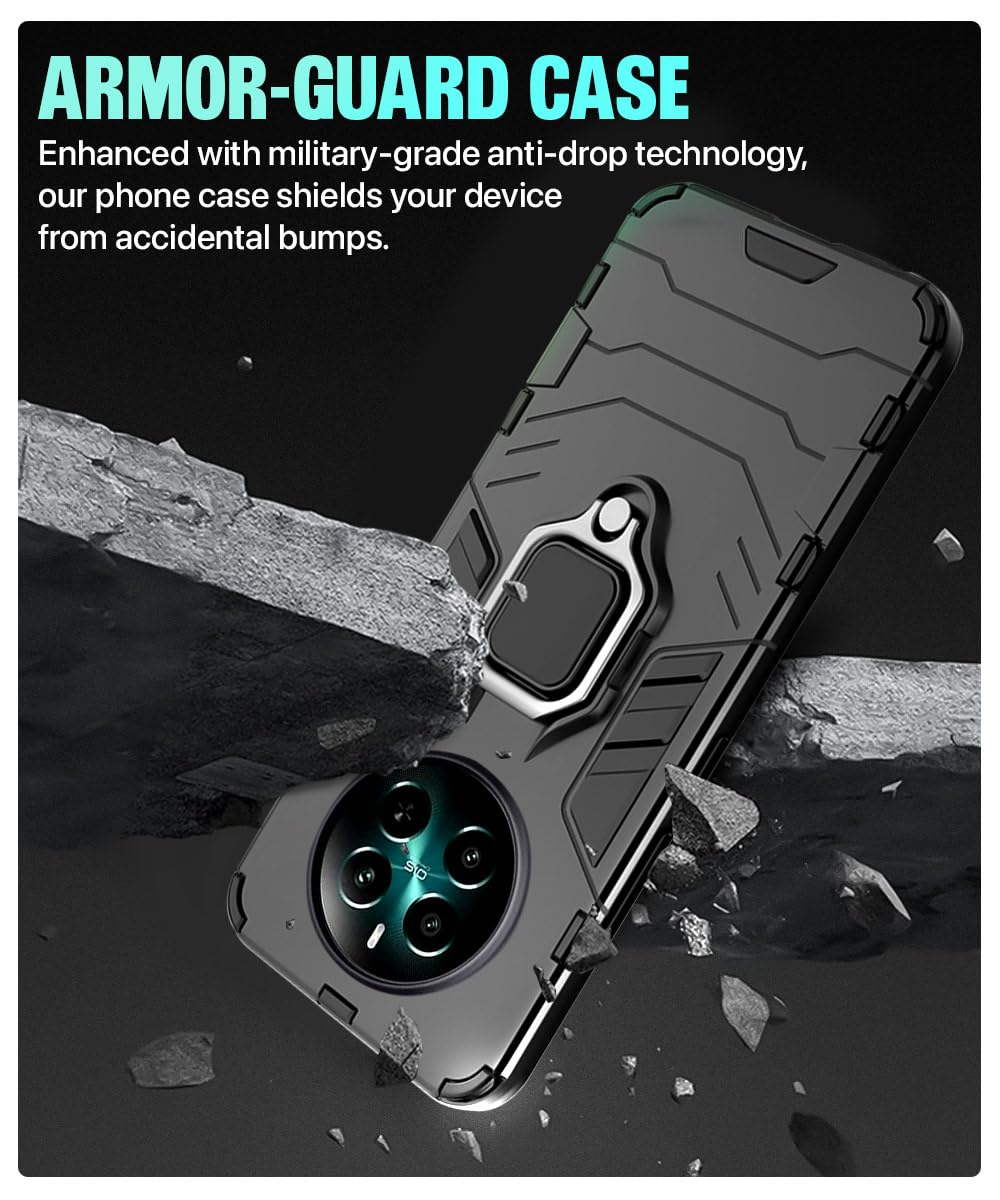 Shock Proof Back Case Mobile Cover for Realme Narzo 70 | Narzo 70 Pro | Realme 12 Plus | P1 5G | Back Cover Case (Tough Armor | Hybrid PC + TPU | Ring Holder & in-Built Kickstand | Black)