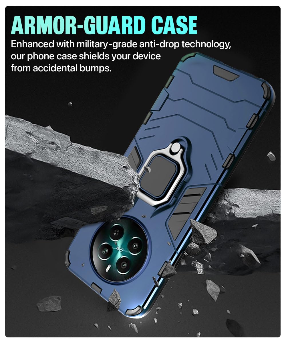 Shock Proof Back Case Mobile Cover for Realme Narzo 70 | Narzo 70 Pro | Realme 12 Plus | P1 5G | Back Cover Case (Tough Armor | Hybrid PC + TPU | Ring Holder & in-Built Kickstand | Blue)