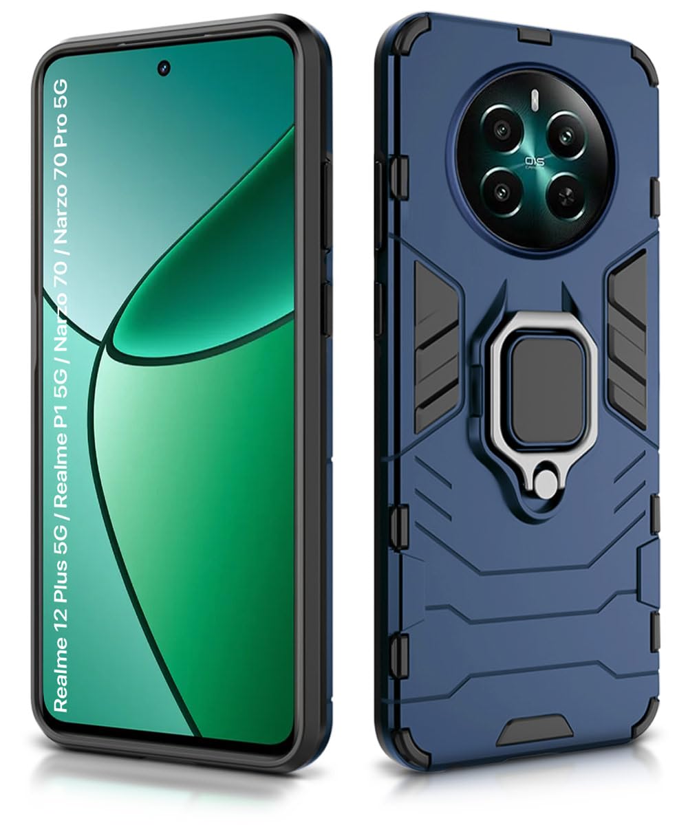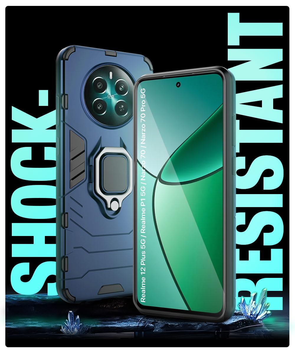 The Shock Proof Back Case Mobile Cover for Realme Narzo 70 | Narzo 70 Pro | Realme 12 Plus | P1 5G | Back Cover Case (Tough Armor | Hybrid PC + TPU | Ring Holder & in-Built Kickstand | Blue) is designed with premium quality materials to provide superior protection, durability, and style for your smartphone. It offers a perfect balance between functionality and aesthetics, ensuring your device stays safe from scratches, impacts, and daily wear. Engineered with precision, it features accurate cutouts for ports, buttons, and cameras, making it highly convenient for everyday use. The slim and lightweight design ensures that your device retains its sleek profile without adding unnecessary bulk. Whether it is a nano film tempered glass, a hybrid back case, or a camera lens protector, each product is created with attention to detail to enhance the user experience and extend the life of your smartphone. The material used ensures long-lasting clarity, anti-scratch performance, and resistance against fingerprints and smudges. It is the ideal choice for users who want both style and substance in their smartphone accessories. This product from reflects innovation and craftsmanship, making it a reliable accessory that safeguards your investment while maintaining modern appeal.
