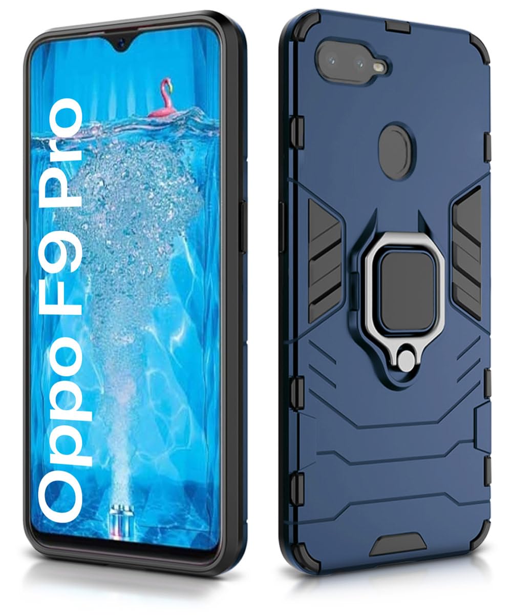 Shock Proof Back Case Mobile Cover for Realme U1 | Oppo F9 Pro | Back Cover Case (Tough Armor | Hybrid PC + TPU | Ring Holder & in-Built Kickstand | Blue)