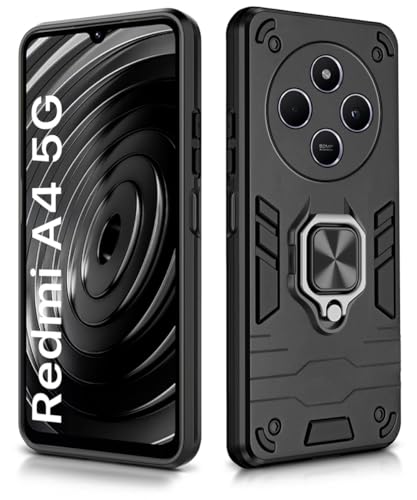 Shock Proof Back Case Mobile Cover for Redmi A4 5G | Poco C75 | Redmi 14C 5G | Poco M7 5G | (Tough Armor | Hybrid PC + TPU | Full Protection with Ring Holder & in-Built Kickstand | Black)