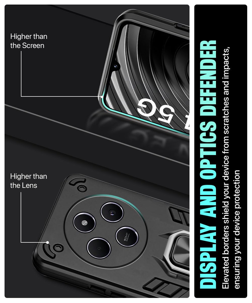 The Shock Proof Back Case Mobile Cover for Redmi A4 5G | Poco C75 | Redmi 14C 5G | Poco M7 5G | (Tough Armor | Hybrid PC + TPU | Full Protection with Ring Holder & in-Built Kickstand | Black) is designed with premium quality materials to provide superior protection, durability, and style for your smartphone. It offers a perfect balance between functionality and aesthetics, ensuring your device stays safe from scratches, impacts, and daily wear. Engineered with precision, it features accurate cutouts for ports, buttons, and cameras, making it highly convenient for everyday use. The slim and lightweight design ensures that your device retains its sleek profile without adding unnecessary bulk. Whether it is a nano film tempered glass, a hybrid back case, or a camera lens protector, each product is created with attention to detail to enhance the user experience and extend the life of your smartphone. The material used ensures long-lasting clarity, anti-scratch performance, and resistance against fingerprints and smudges. It is the ideal choice for users who want both style and substance in their smartphone accessories. This product from reflects innovation and craftsmanship, making it a reliable accessory that safeguards your investment while maintaining modern appeal.