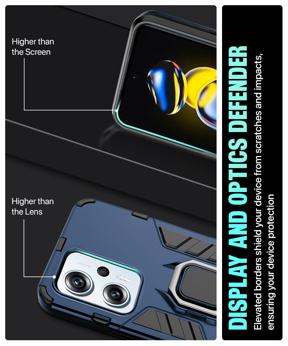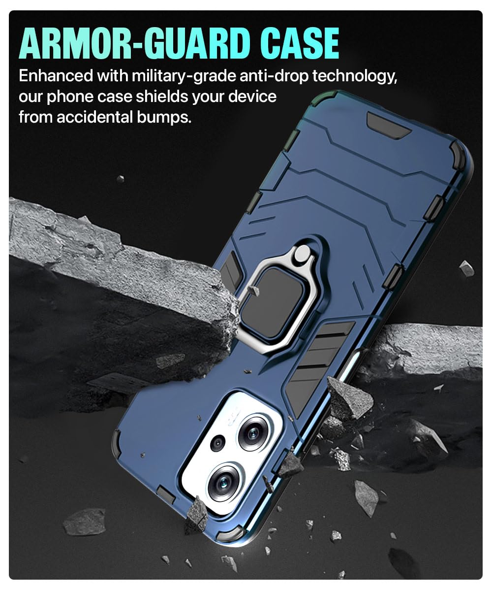 Shock Proof Back Case Mobile Cover for Redmi K50i 5G | Back Cover Case (Tough Armor | Hybrid PC + TPU | Ring Holder & in-Built Kickstand | Blue)