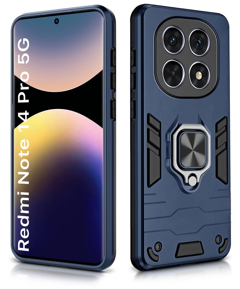 Shock Proof Back Case Mobile Cover for Redmi Note 14 Pro 5G | Poco X7 5G | Back Cover Case (Tough Armor | Hybrid PC + TPU | Ring Holder & in-Built Kickstand | Blue)