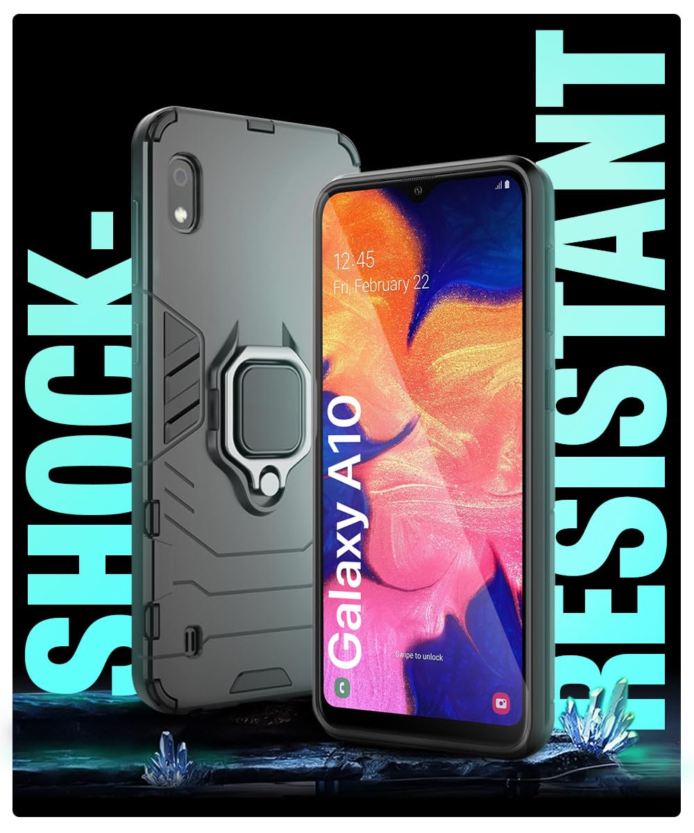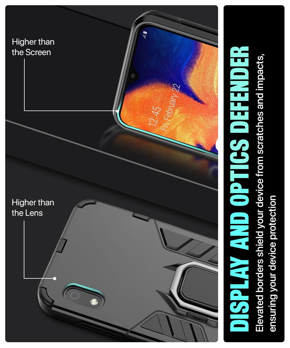 Shock Proof Back Case Mobile Cover for Samsung Galaxy A10 | Bumper Back Cover Case(Tough Armor | Hybrid PC + TPU | Full Protection with Ring Holder & in-Built Kickstand | Black)