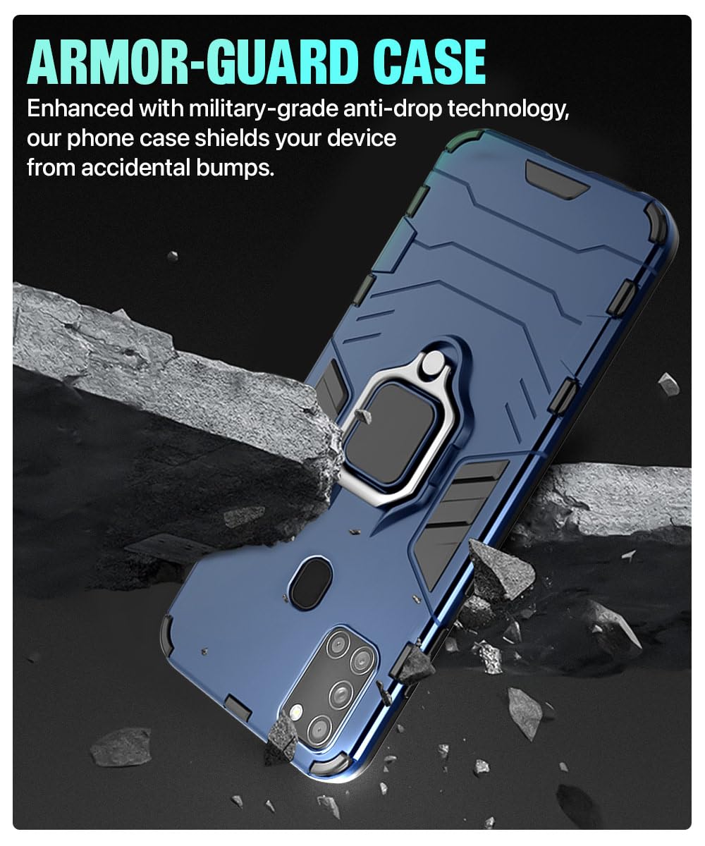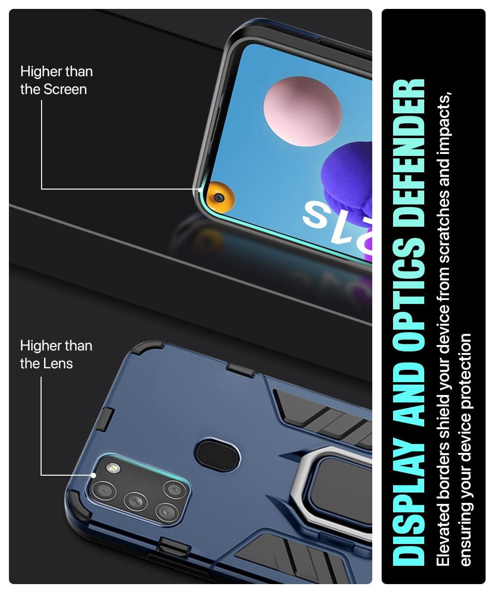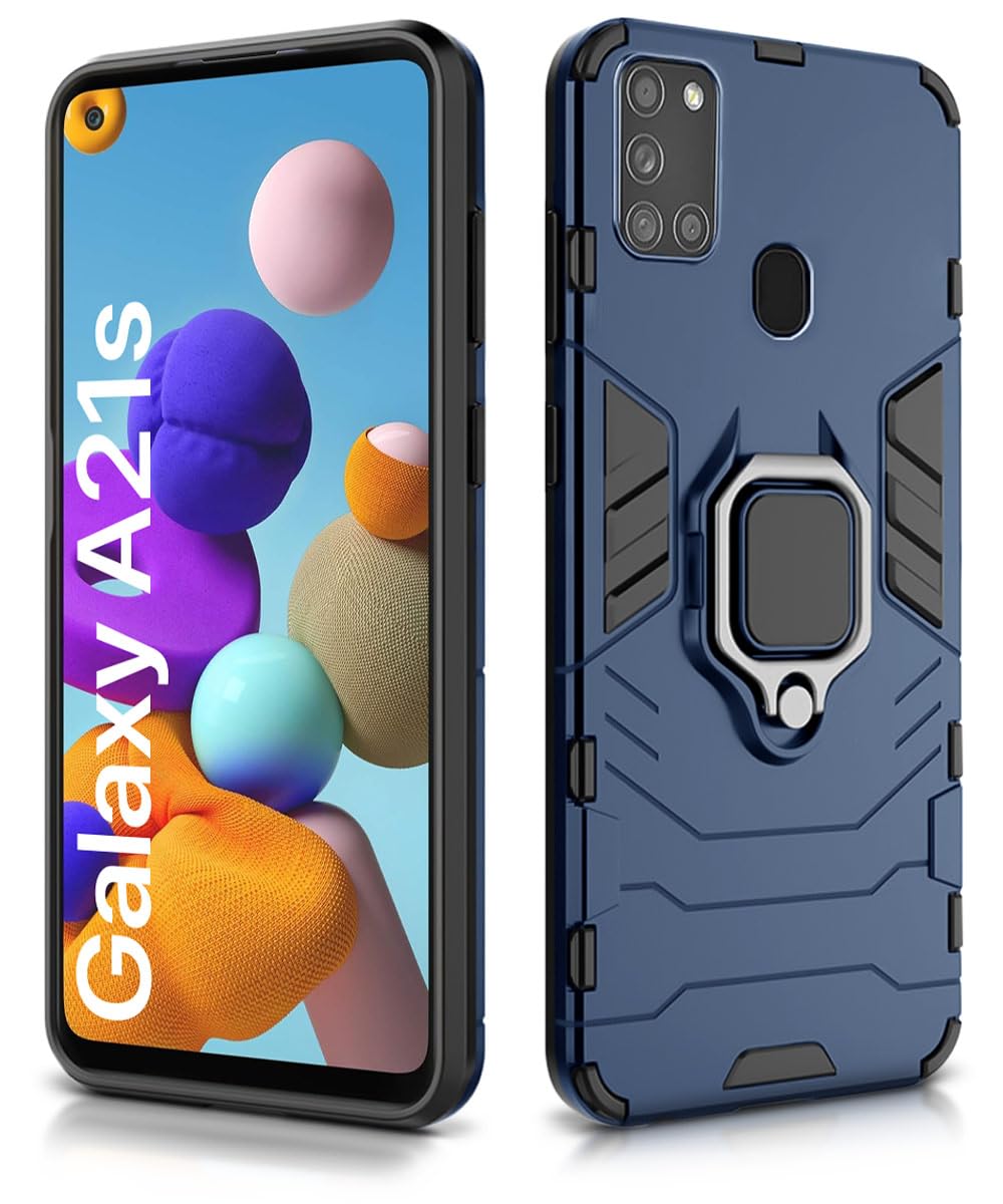 Shock Proof Back Case Mobile Cover for Samsung Galaxy A21s | Back Cover Case (Tough Armor | Hybrid PC + TPU | Ring Holder & in-Built Kickstand | Blue)