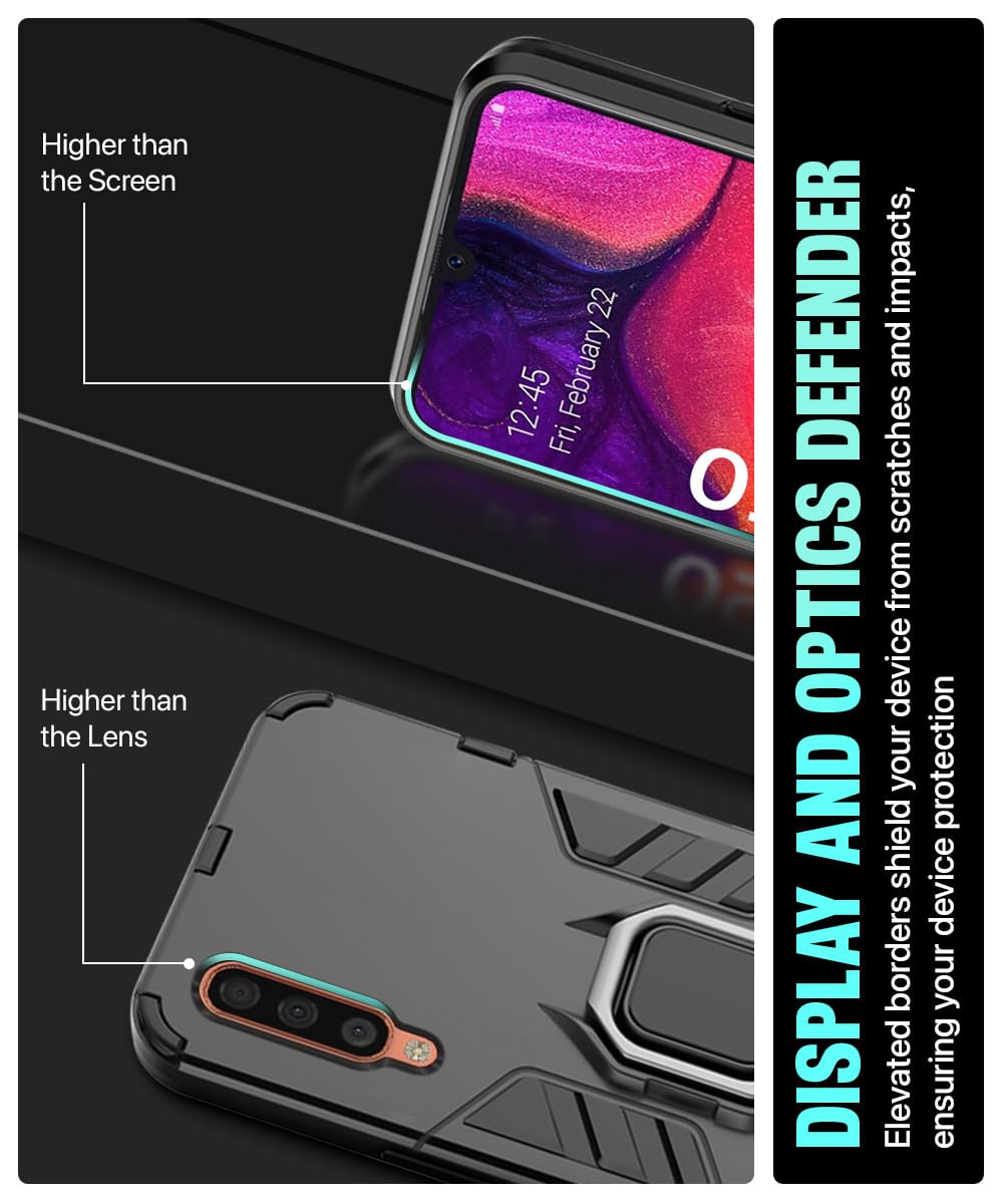 The Shock Proof Back Case Mobile Cover for Samsung Galaxy A50 | A50s | A30s (Armor | Hybrid PC + TPU | Full Protection with Ring Holder Kickstand | Carbon Black) is designed with premium quality materials to provide superior protection, durability, and style for your smartphone. It offers a perfect balance between functionality and aesthetics, ensuring your device stays safe from scratches, impacts, and daily wear. Engineered with precision, it features accurate cutouts for ports, buttons, and cameras, making it highly convenient for everyday use. The slim and lightweight design ensures that your device retains its sleek profile without adding unnecessary bulk. Whether it is a nano film tempered glass, a hybrid back case, or a camera lens protector, each product is created with attention to detail to enhance the user experience and extend the life of your smartphone. The material used ensures long-lasting clarity, anti-scratch performance, and resistance against fingerprints and smudges. It is the ideal choice for users who want both style and substance in their smartphone accessories. This product from reflects innovation and craftsmanship, making it a reliable accessory that safeguards your investment while maintaining modern appeal.
