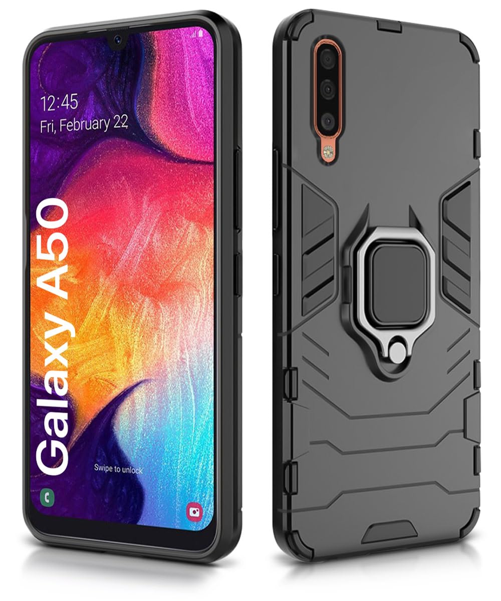 Shock Proof Back Case Mobile Cover for Samsung Galaxy A50 | A50s | A30s (Armor | Hybrid PC + TPU | Full Protection with Ring Holder Kickstand | Carbon Black)