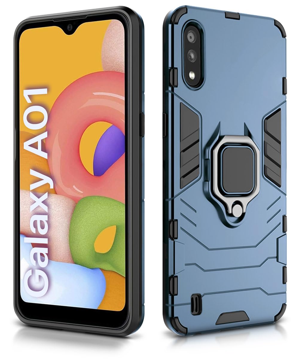Shock Proof Back Case Mobile Cover for Samsung Galaxy M01 | A01 | Back Cover Case (Tough Armor | Hybrid PC + TPU | Ring Holder & in-Built Kickstand | Blue)