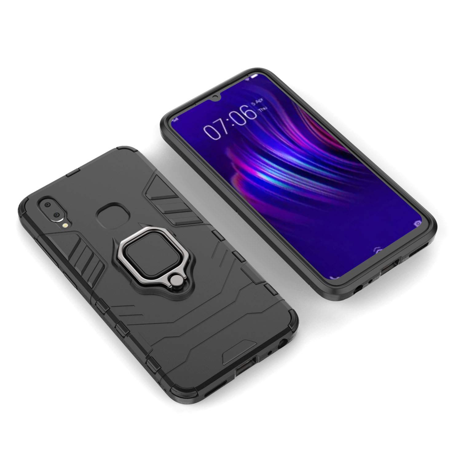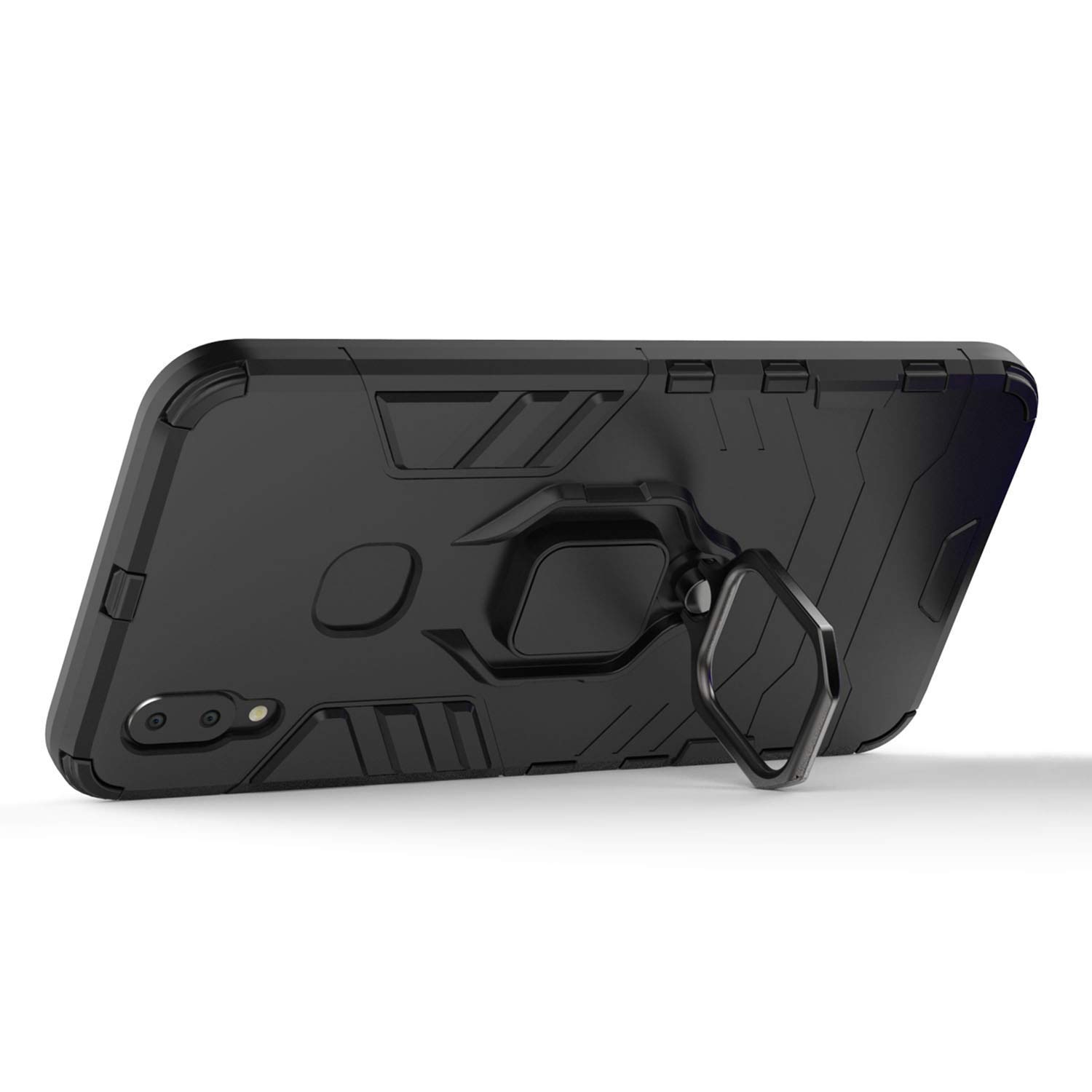 Shock Proof Back Case Mobile Cover for Samsung Galaxy M01s | Galaxy A10s (Armor | Hybrid PC + TPU | Full Protection with Ring Holder Kickstand | Carbon Black)