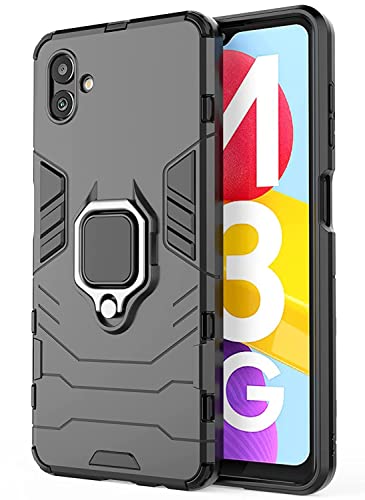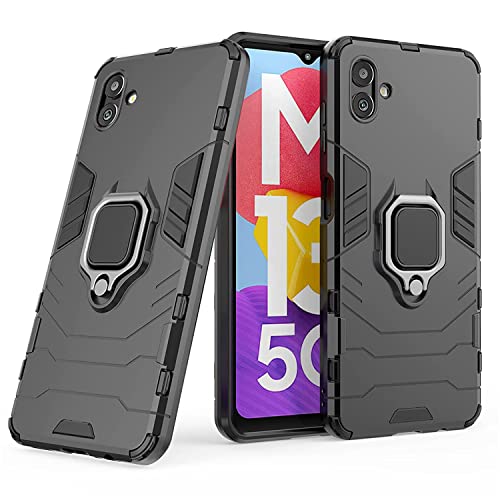 Shock Proof Back Case Mobile Cover for Samsung Galaxy M13 5G | Back Cover Case (Tough Armor | Hybrid PC + TPU | Ring Holder & in-Built Kickstand | Black)