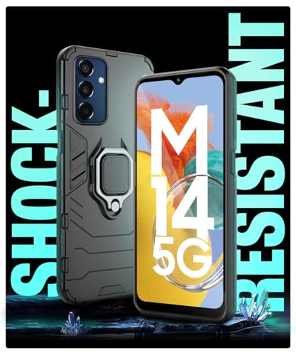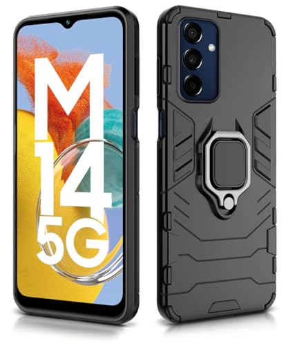 Shock Proof Back Case Mobile Cover for Samsung Galaxy M14 5G | Back Cover Case (Tough Armor | Hybrid PC + TPU | Ring Holder & in-Built Kickstand | Black)