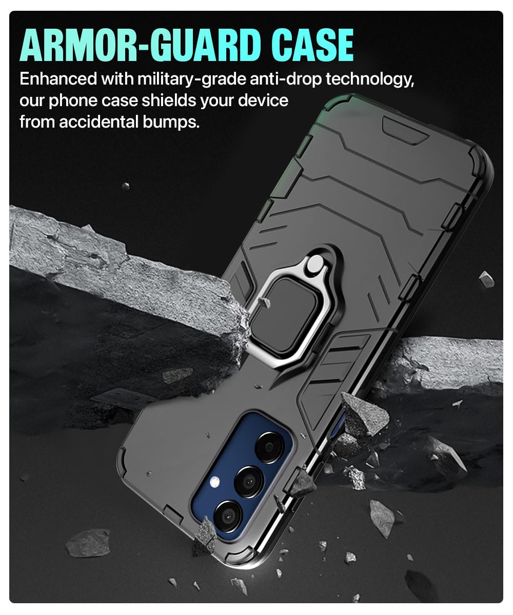 The Shock Proof Back Case Mobile Cover for Samsung Galaxy M14 5G | Back Cover Case (Tough Armor | Hybrid PC + TPU | Ring Holder & in-Built Kickstand | Black) is designed with premium quality materials to provide superior protection, durability, and style for your smartphone. It offers a perfect balance between functionality and aesthetics, ensuring your device stays safe from scratches, impacts, and daily wear. Engineered with precision, it features accurate cutouts for ports, buttons, and cameras, making it highly convenient for everyday use. The slim and lightweight design ensures that your device retains its sleek profile without adding unnecessary bulk. Whether it is a nano film tempered glass, a hybrid back case, or a camera lens protector, each product is created with attention to detail to enhance the user experience and extend the life of your smartphone. The material used ensures long-lasting clarity, anti-scratch performance, and resistance against fingerprints and smudges. It is the ideal choice for users who want both style and substance in their smartphone accessories. This product from reflects innovation and craftsmanship, making it a reliable accessory that safeguards your investment while maintaining modern appeal.