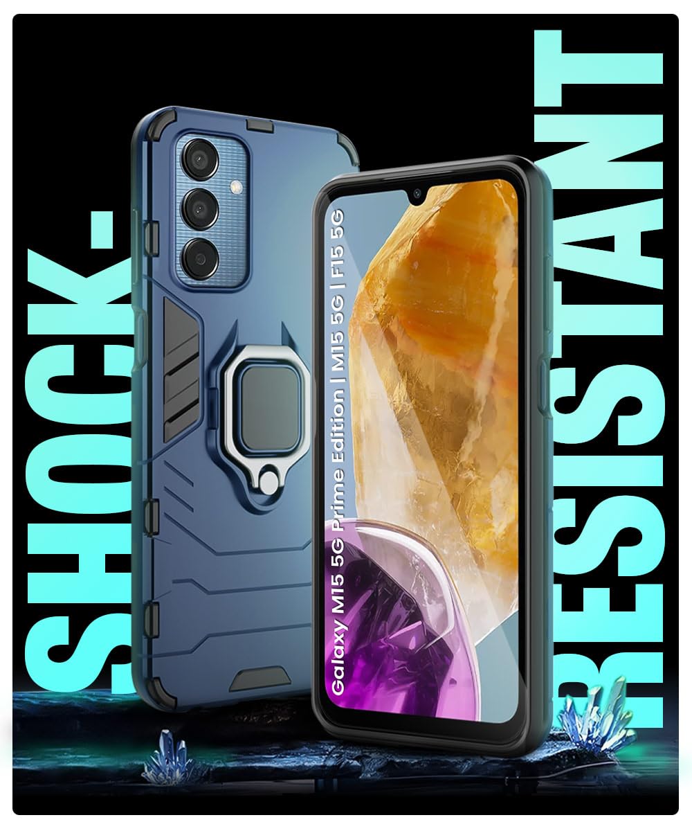 Shock Proof Back Case Mobile Cover for Samsung Galaxy M15 5G Prime Edition | M15 5G | F15 5G | Back Cover Case (Tough Armor | Hybrid PC + TPU | Ring Holder & in-Built Kickstand | Blue)