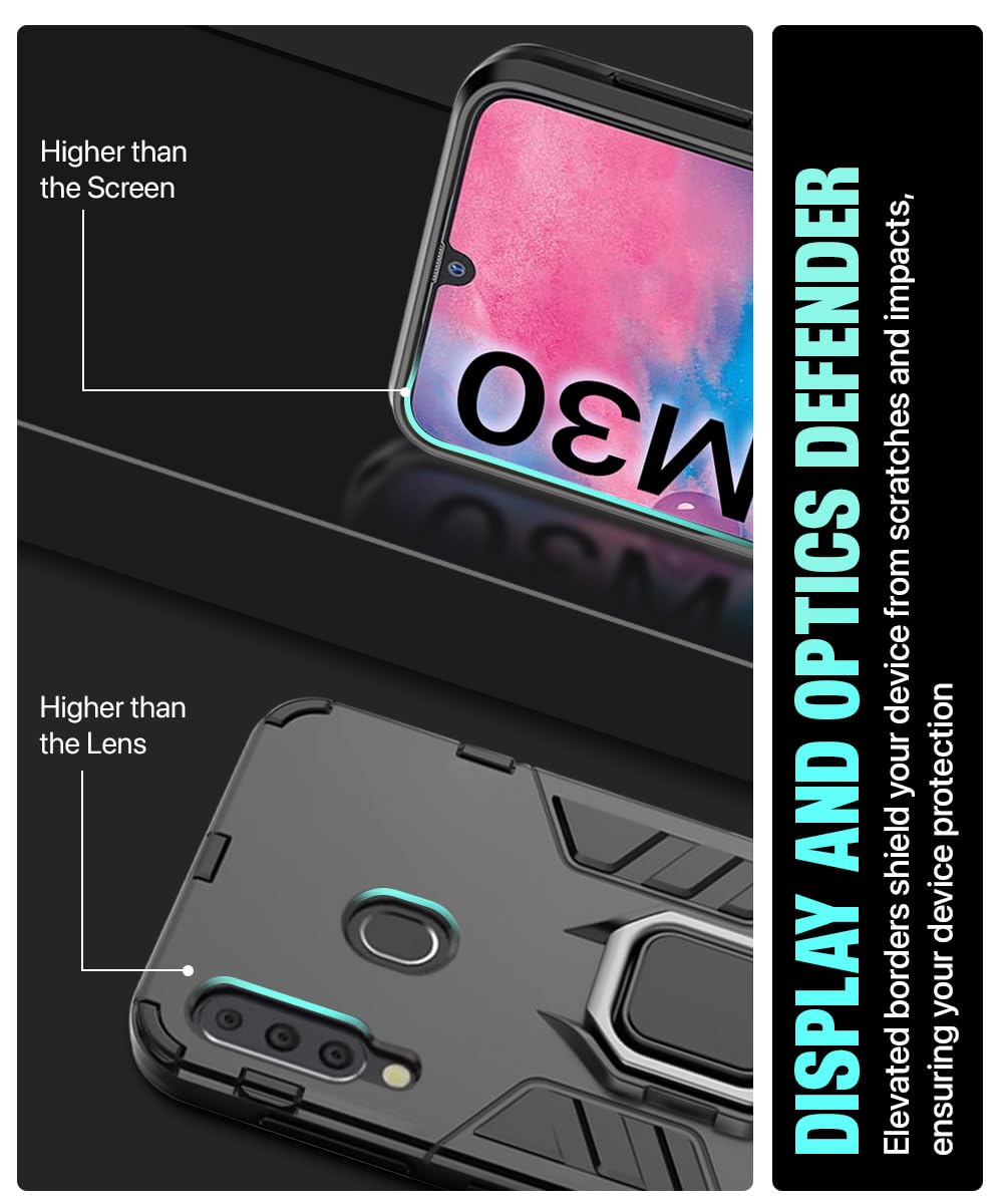 Shock Proof Back Case Mobile Cover for Samsung Galaxy M30 | Back Cover Case (Tough Armor | Hybrid PC + TPU | Ring Holder & inBuilt Kickstand | Black)