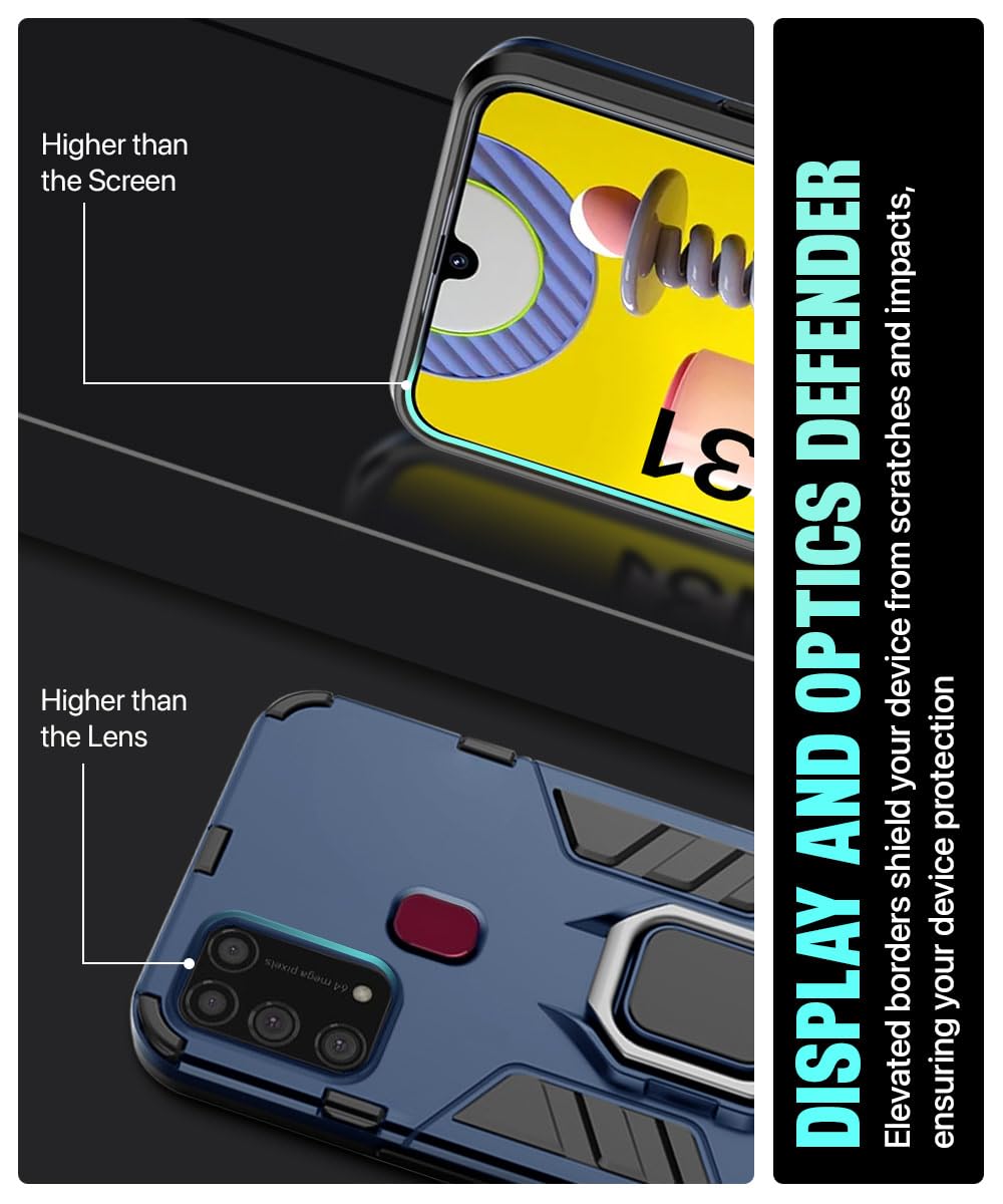 The Shock Proof Back Case Mobile Cover for Samsung Galaxy M31 / F41 / M31 Prime | Back Cover Case (Tough Armor | Hybrid PC + TPU | Ring Holder & in-Built Kickstand | Blue) is designed with premium quality materials to provide superior protection, durability, and style for your smartphone. It offers a perfect balance between functionality and aesthetics, ensuring your device stays safe from scratches, impacts, and daily wear. Engineered with precision, it features accurate cutouts for ports, buttons, and cameras, making it highly convenient for everyday use. The slim and lightweight design ensures that your device retains its sleek profile without adding unnecessary bulk. Whether it is a nano film tempered glass, a hybrid back case, or a camera lens protector, each product is created with attention to detail to enhance the user experience and extend the life of your smartphone. The material used ensures long-lasting clarity, anti-scratch performance, and resistance against fingerprints and smudges. It is the ideal choice for users who want both style and substance in their smartphone accessories. This product from reflects innovation and craftsmanship, making it a reliable accessory that safeguards your investment while maintaining modern appeal.