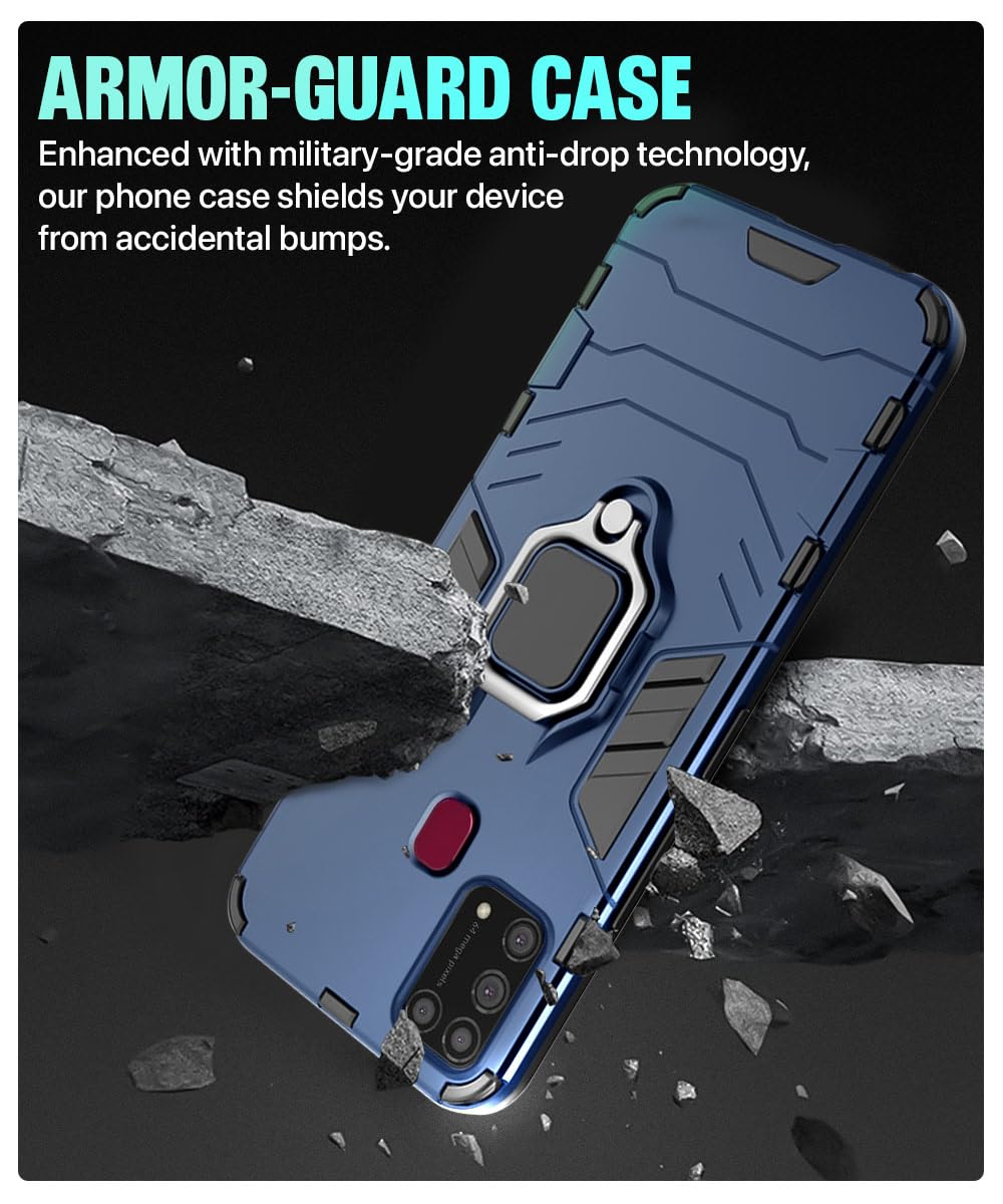 Shock Proof Back Case Mobile Cover for Samsung Galaxy M31 / F41 / M31 Prime | Back Cover Case (Tough Armor | Hybrid PC + TPU | Ring Holder & in-Built Kickstand | Blue)