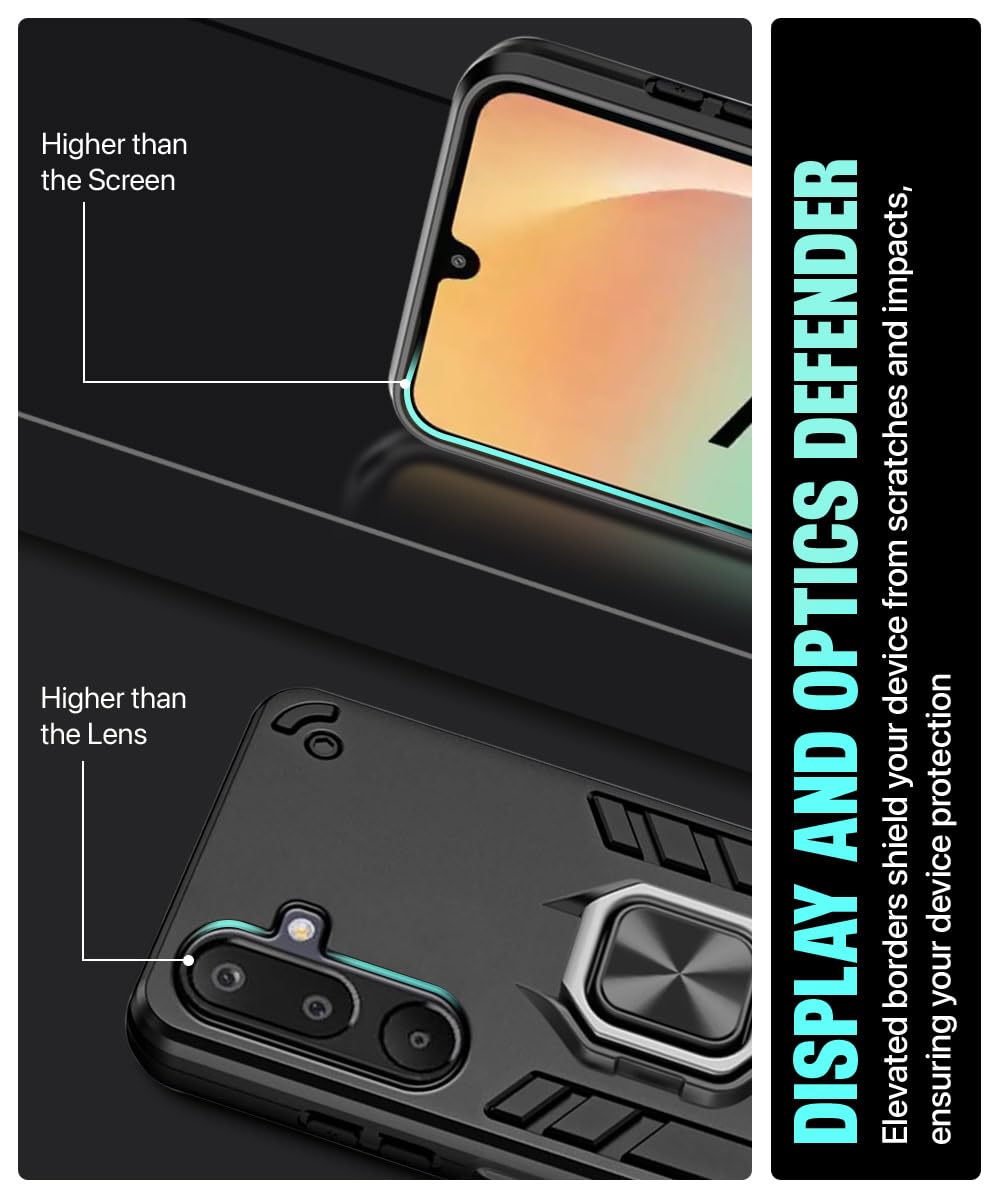 Shock Proof Back Case Mobile Cover for Samsung Galaxy M36 5G | Samsung Galaxy F36 5G | Back Cover Case (Tough Armor | Hybrid PC + TPU | Ring Holder & in-Built Kickstand | Black)