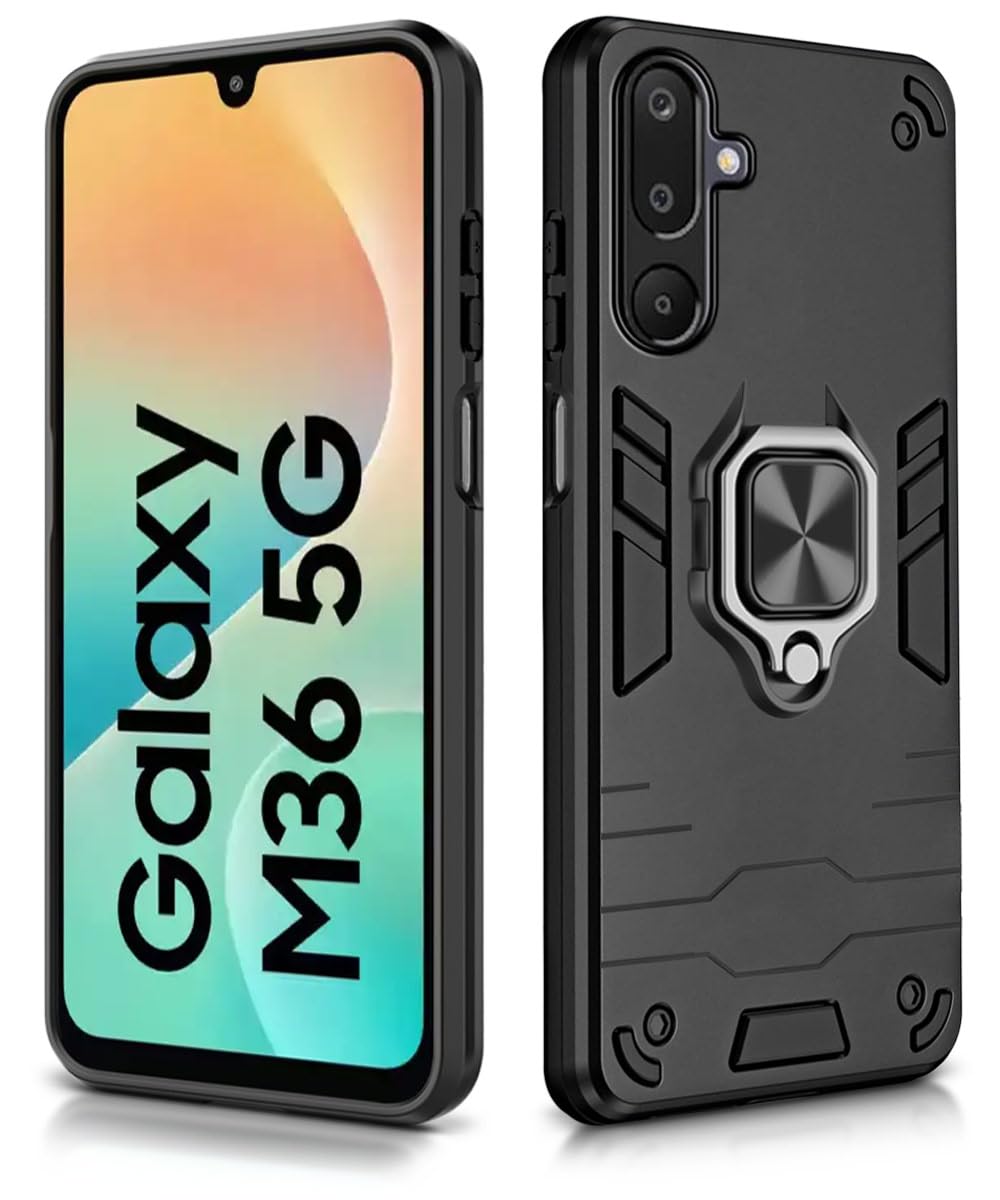 The Shock Proof Back Case Mobile Cover for Samsung Galaxy M36 5G | Samsung Galaxy F36 5G | Back Cover Case (Tough Armor | Hybrid PC + TPU | Ring Holder & in-Built Kickstand | Black) is designed with premium quality materials to provide superior protection, durability, and style for your smartphone. It offers a perfect balance between functionality and aesthetics, ensuring your device stays safe from scratches, impacts, and daily wear. Engineered with precision, it features accurate cutouts for ports, buttons, and cameras, making it highly convenient for everyday use. The slim and lightweight design ensures that your device retains its sleek profile without adding unnecessary bulk. Whether it is a nano film tempered glass, a hybrid back case, or a camera lens protector, each product is created with attention to detail to enhance the user experience and extend the life of your smartphone. The material used ensures long-lasting clarity, anti-scratch performance, and resistance against fingerprints and smudges. It is the ideal choice for users who want both style and substance in their smartphone accessories. This product from reflects innovation and craftsmanship, making it a reliable accessory that safeguards your investment while maintaining modern appeal.
