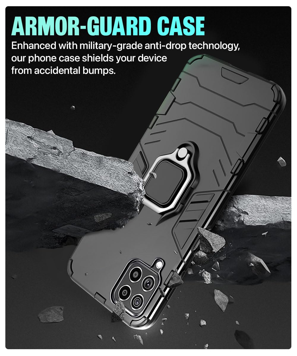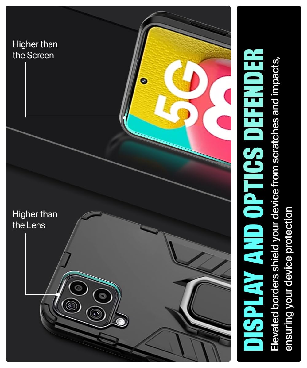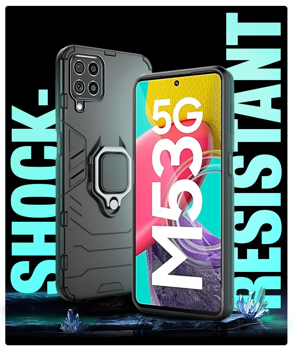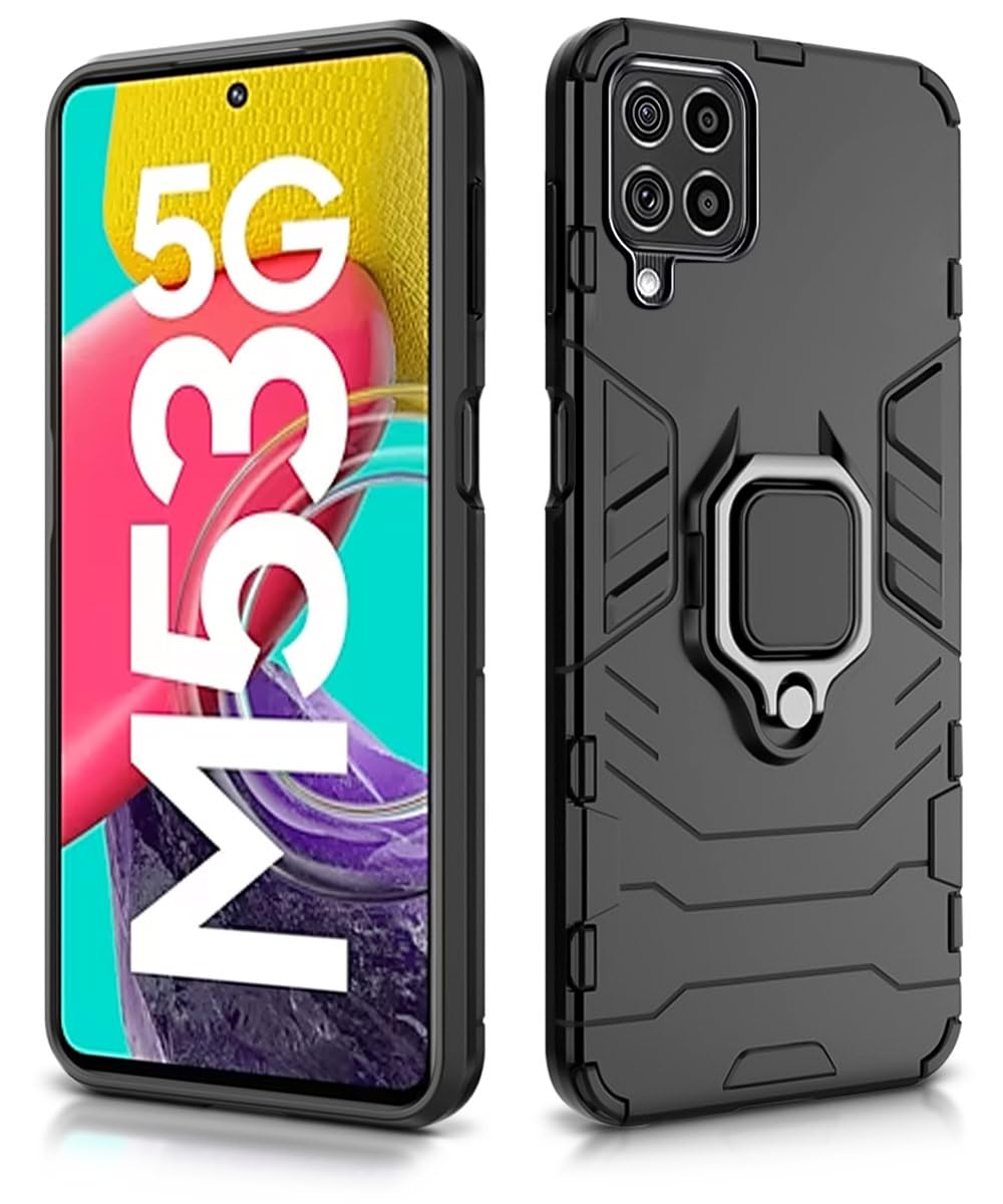 Shock Proof Back Case Mobile Cover for Samsung Galaxy M53 5G | Back Cover Case (Tough Armor | Hybrid PC + TPU | Ring Holder & in-Built Kickstand | Black)