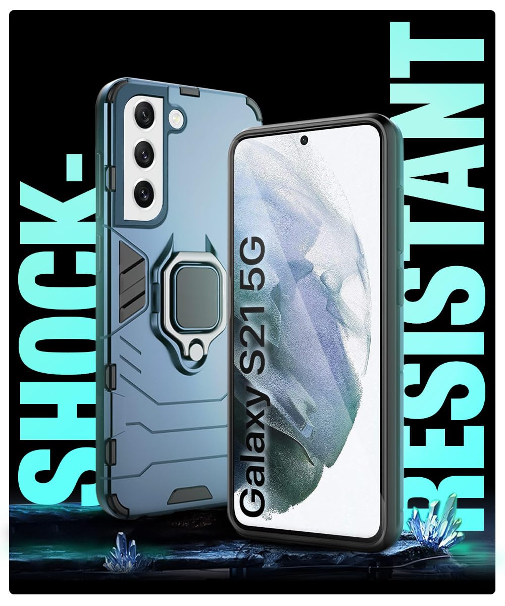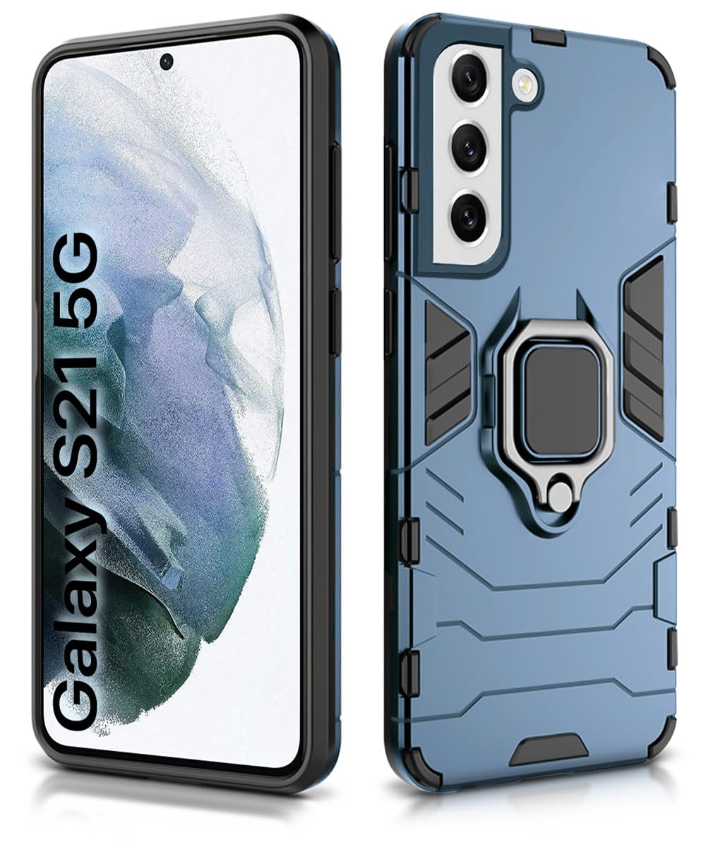 Shock Proof Back Case Mobile Cover for Samsung Galaxy S21 5G | Back Cover Case (Tough Armor | Hybrid PC + TPU | Ring Holder & in-Built Kickstand | Blue)