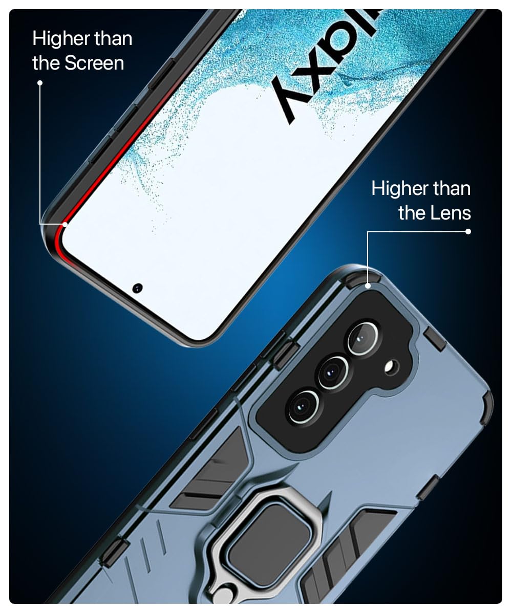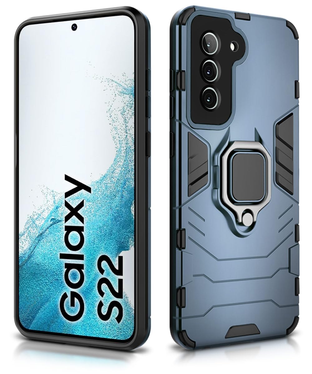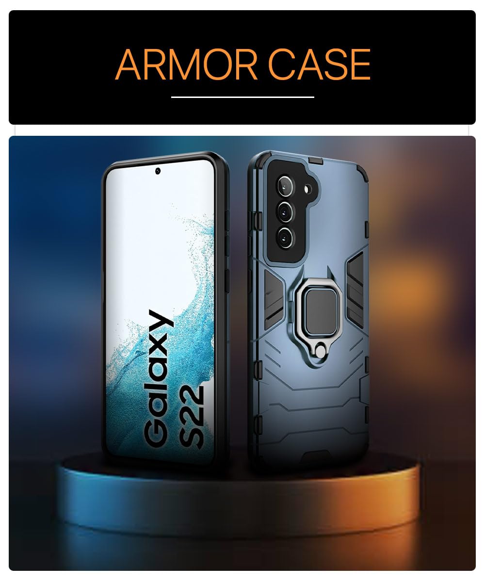 Shock Proof Back Case Mobile Cover for Samsung Galaxy S22 5G | Back Cover Case (Tough Armor | Hybrid PC + TPU | Ring Holder & in-Built Kickstand | Blue)