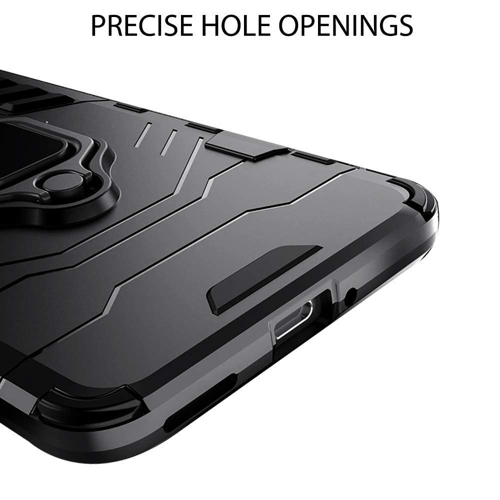 Shock Proof Back Case Mobile Cover for Tecno Spark 8 | Back Cover Case (Tough Armor | Hybrid PC + TPU | Ring Holder & in-Built Kickstand | Black)