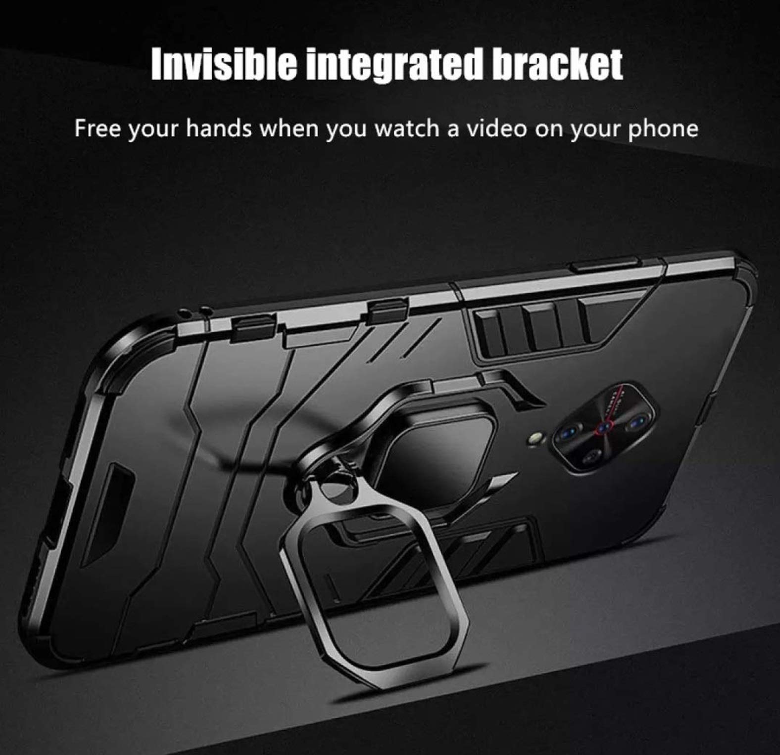 Shock Proof Back Case Mobile Cover for Vivo S1 Pro (Armor | Hybrid PC + TPU | Full Protection with Ring Holder Kickstand | Carbon Black)
