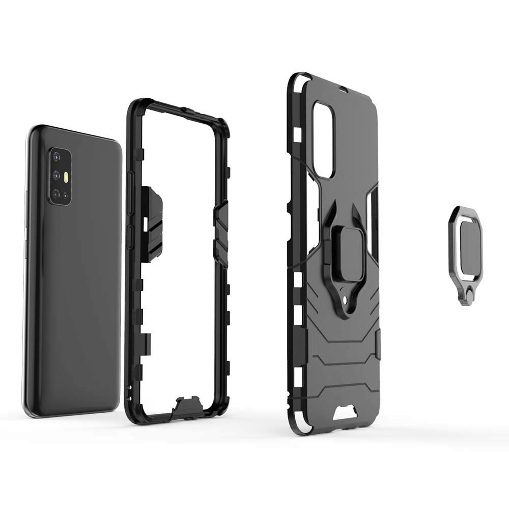 Shock Proof Back Case Mobile Cover for Vivo V17 (Armor | Hybrid PC + TPU | Full Protection with Ring Holder Kickstand | Carbon Black)