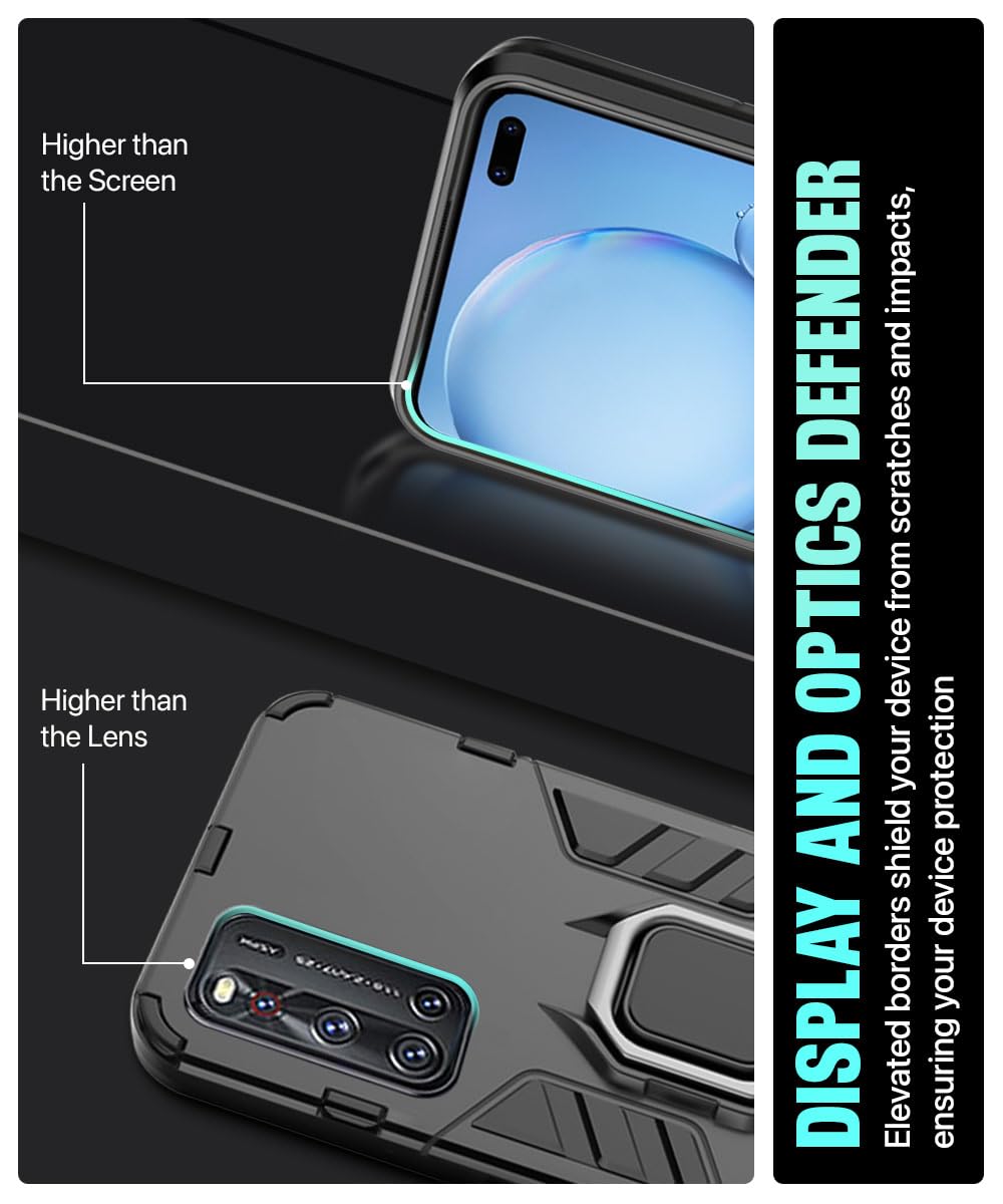 Shock Proof Back Case Mobile Cover for Vivo V19 | Back Cover Case (Tough Armor | Hybrid PC + TPU | Ring Holder & in-Built Kickstand | Black)