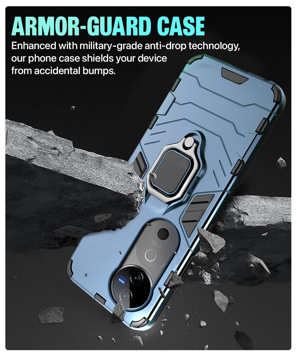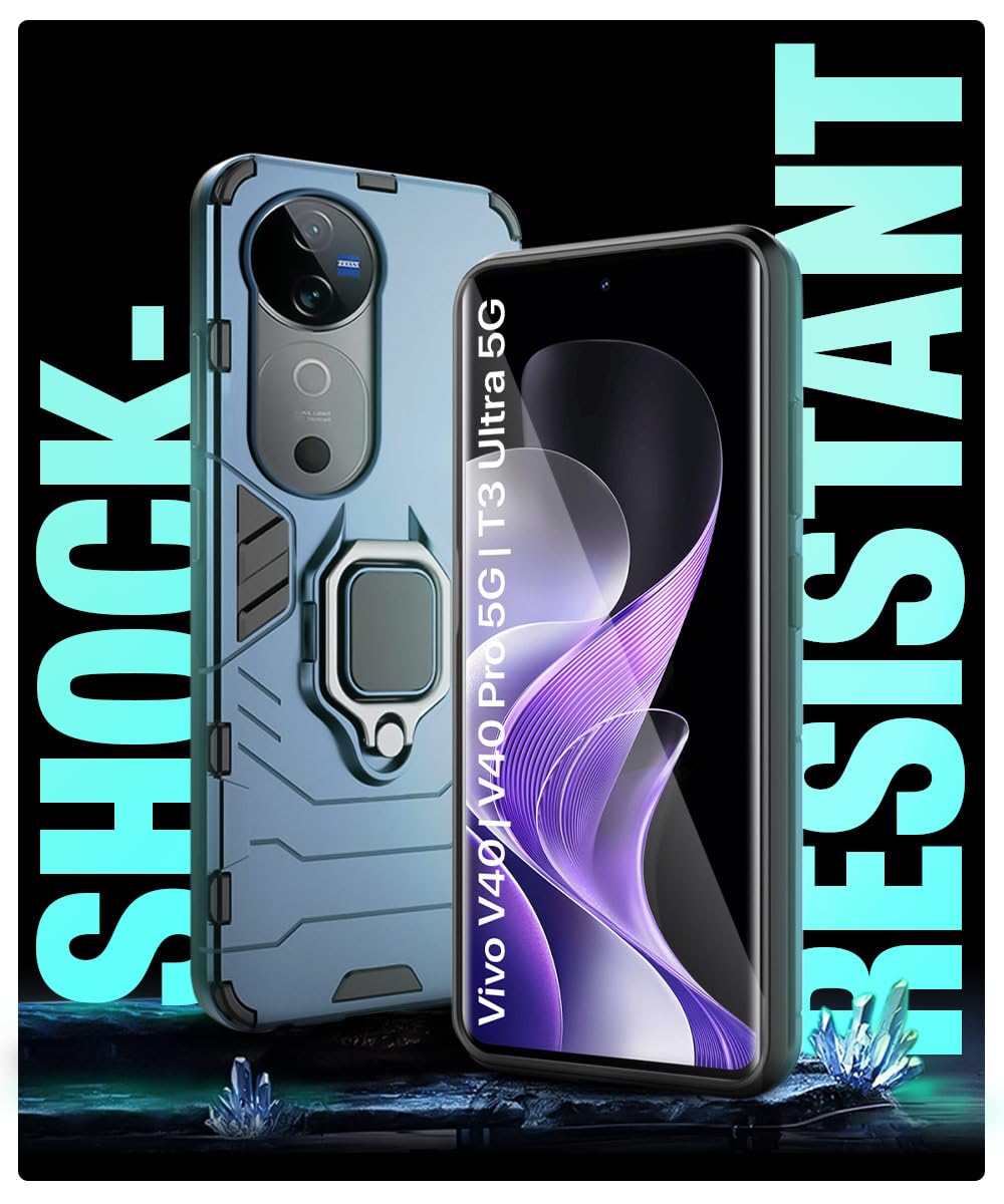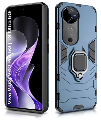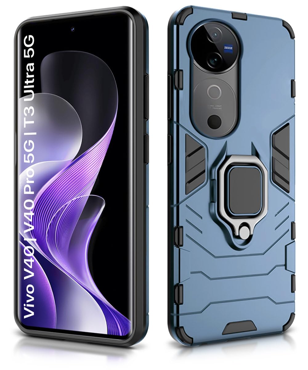 Shock Proof Back Case Mobile Cover for Vivo V40 | V40 Pro 5G | T3 Ultra 5G | Back Cover Case (Tough Armor | Hybrid PC + TPU | Ring Holder & in-Built Kickstand | Blue)