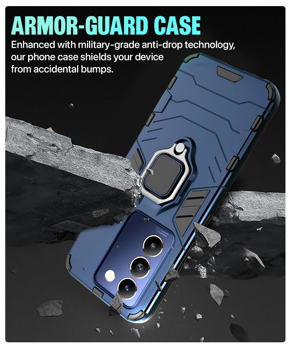 Shock Proof Back Case Mobile Cover for Vivo Y200e 5G | Vivo T3 5G | Back Cover Case (Tough Armor | Hybrid PC + TPU | Ring Holder & inBuilt Kickstand | Blue)