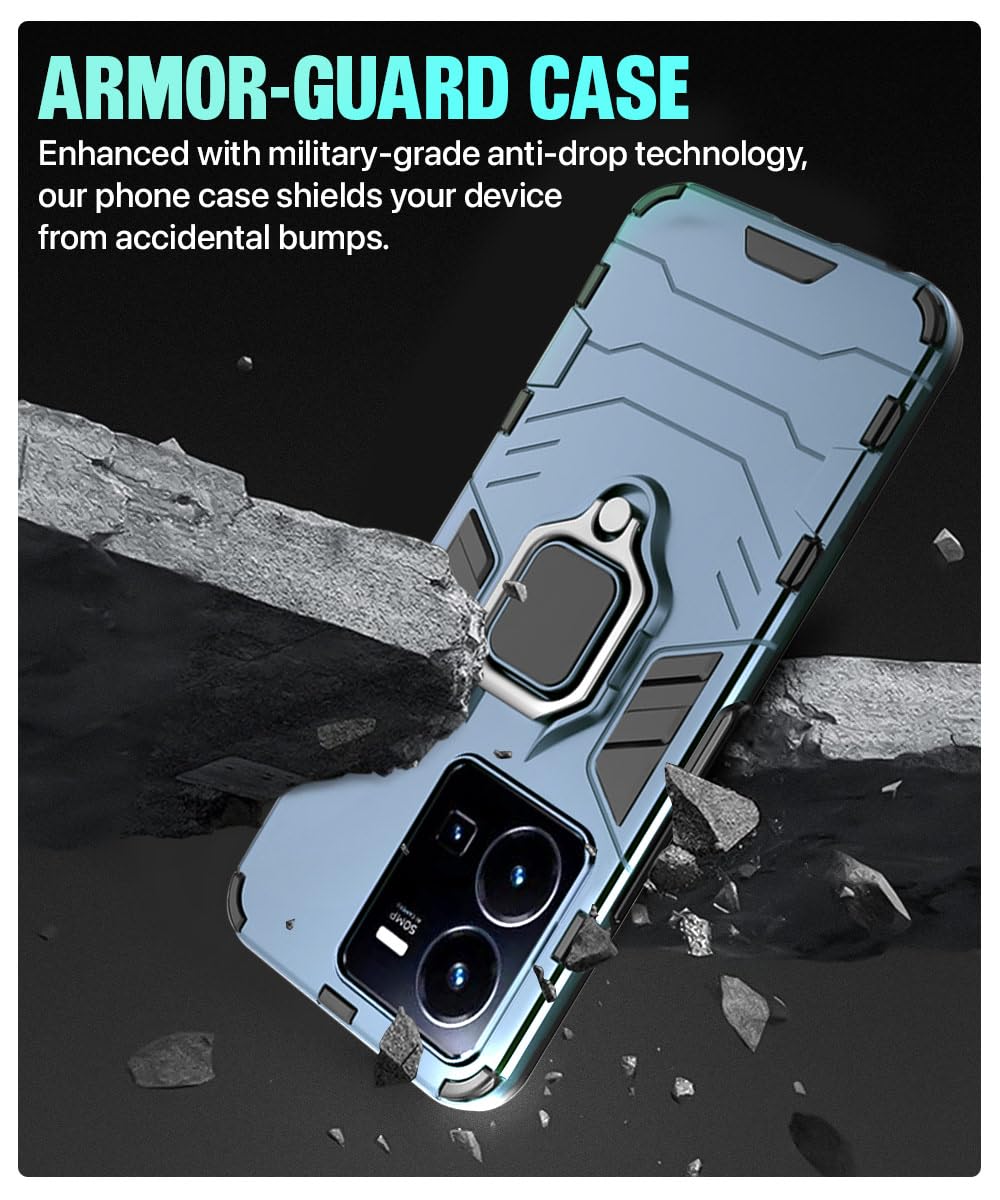 The Shock Proof Back Case Mobile Cover for Vivo Y35 | Back Cover Case (Tough Armor | Hybrid PC + TPU | Ring Holder & in-Built Kickstand | Blue) is designed with premium quality materials to provide superior protection, durability, and style for your smartphone. It offers a perfect balance between functionality and aesthetics, ensuring your device stays safe from scratches, impacts, and daily wear. Engineered with precision, it features accurate cutouts for ports, buttons, and cameras, making it highly convenient for everyday use. The slim and lightweight design ensures that your device retains its sleek profile without adding unnecessary bulk. Whether it is a nano film tempered glass, a hybrid back case, or a camera lens protector, each product is created with attention to detail to enhance the user experience and extend the life of your smartphone. The material used ensures long-lasting clarity, anti-scratch performance, and resistance against fingerprints and smudges. It is the ideal choice for users who want both style and substance in their smartphone accessories. This product from reflects innovation and craftsmanship, making it a reliable accessory that safeguards your investment while maintaining modern appeal.
