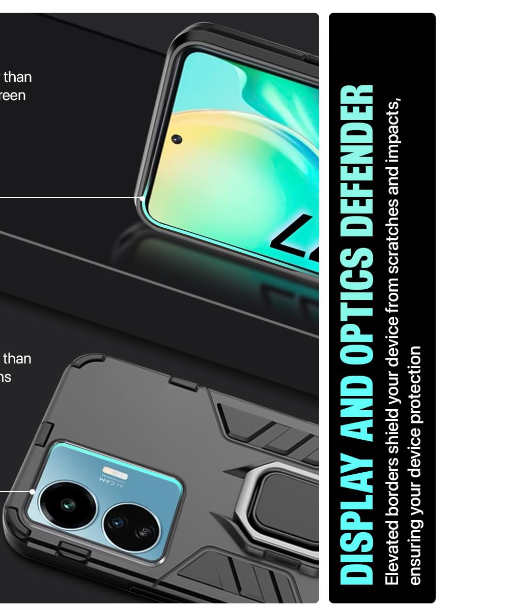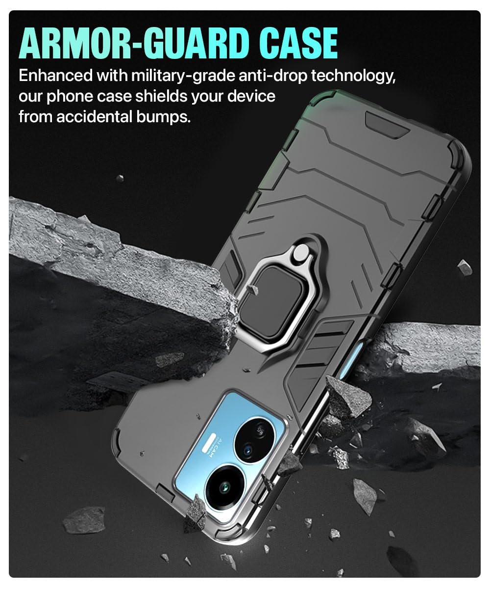 Shock Proof Back Case Mobile Cover for Vivo Y77 5G | Back Cover Case (Tough Armor | Hybrid PC + TPU | Ring Holder & in-Built Kickstand | Black)